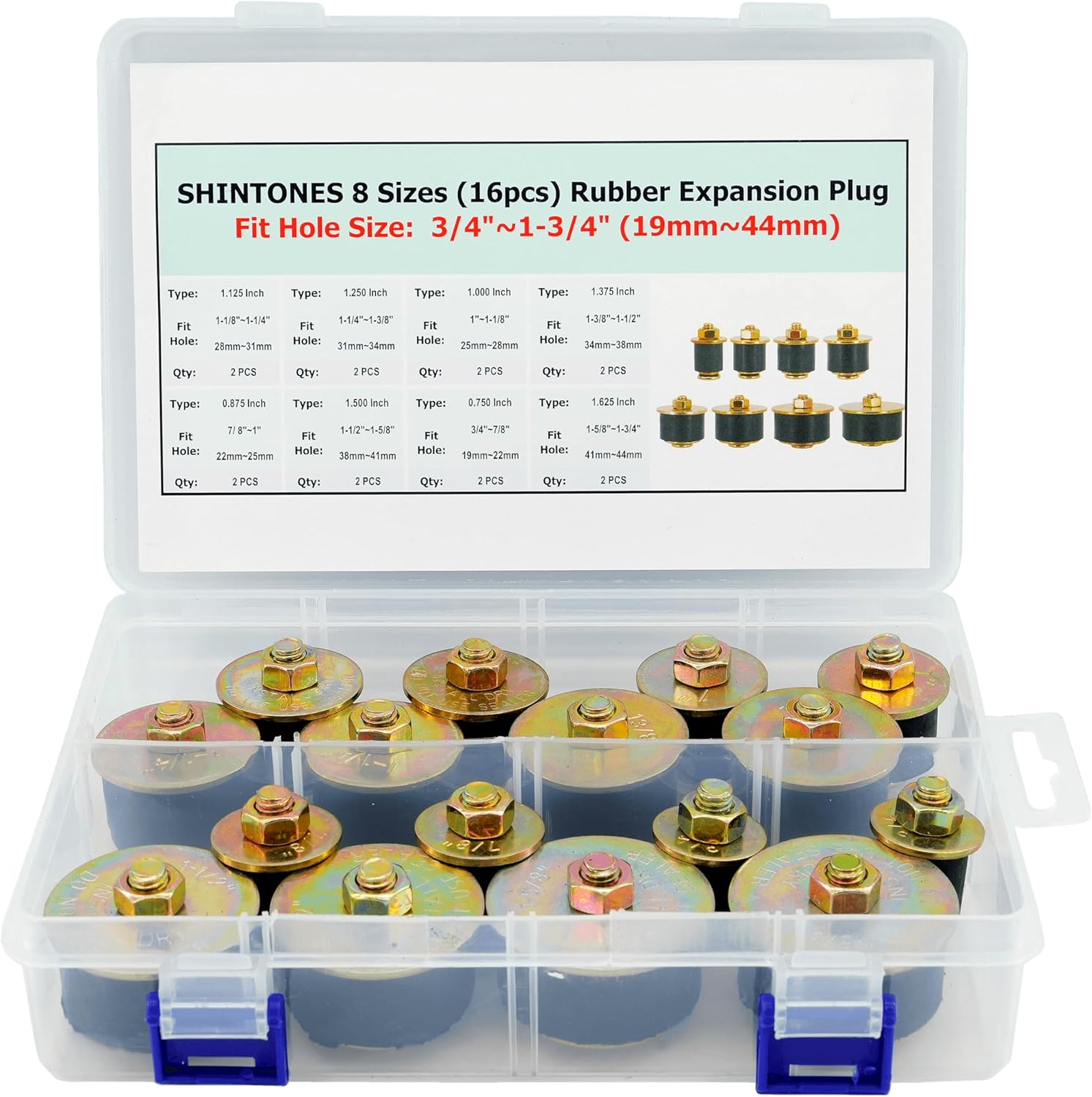 SHINTONES 25pcs Automotive Rubber Expansion Plug, 11 Sizes Rubber Expandable Freeze Plugs Kit Fit Hole Size:3/4"~2-1/8" (19mm~53mm)