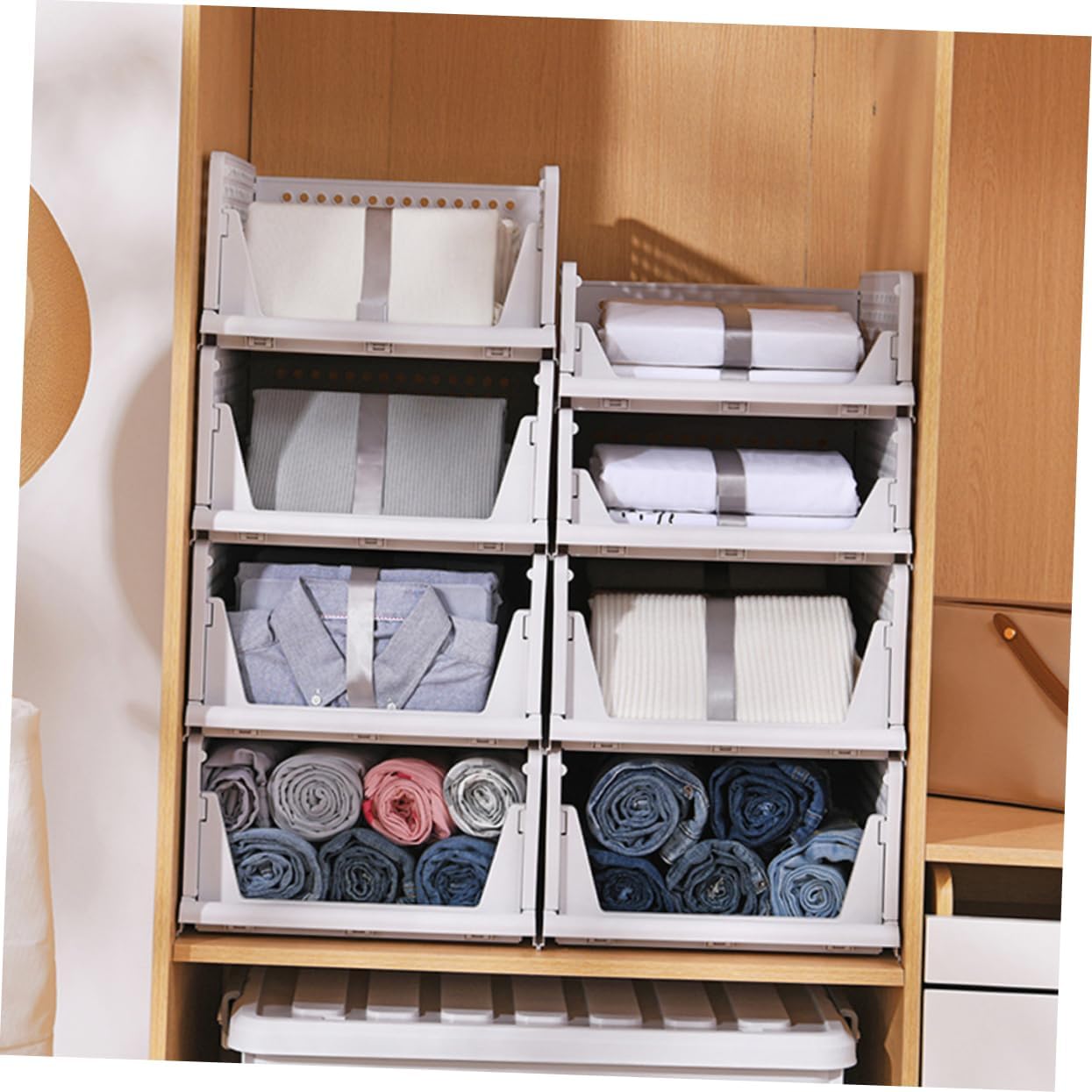 Package List 2 storage drawers Features - Color: White Closet Storage Plastic Drawers - Material: Plastic Creative Closet Storage Drawers - Size: 43.00X32.30X18.00cm 16.90X12.69X7.07inch Creative Stackable Clothes Drawers - Pull out your clothes easily, no need to take out other clothes Creative Clothes Organizers. - Several compartments design, convenient for you to use Clothes Organizer. - A wonderful tool to organize things in your closets and drawers Stackable Clothes Drawer. - Hold your T-shirts, short- and long-sleeve shirts, collared shirts, pants and more Plastic Wardrobe Closets Organizers. - Ventilated holes design, let your clothes breathe, and Closet Storage Drawers.Goods InformationCloset Storage Drawers This organizer is made of premium and plastic material, strong toughness and owns good .Creative Stackable Clothes Drawers A great tool provides an easy and convenient way to organize your clothes.Plastic Wardrobe Closets Organizers Pull out your clothes without ruining other folded clothes