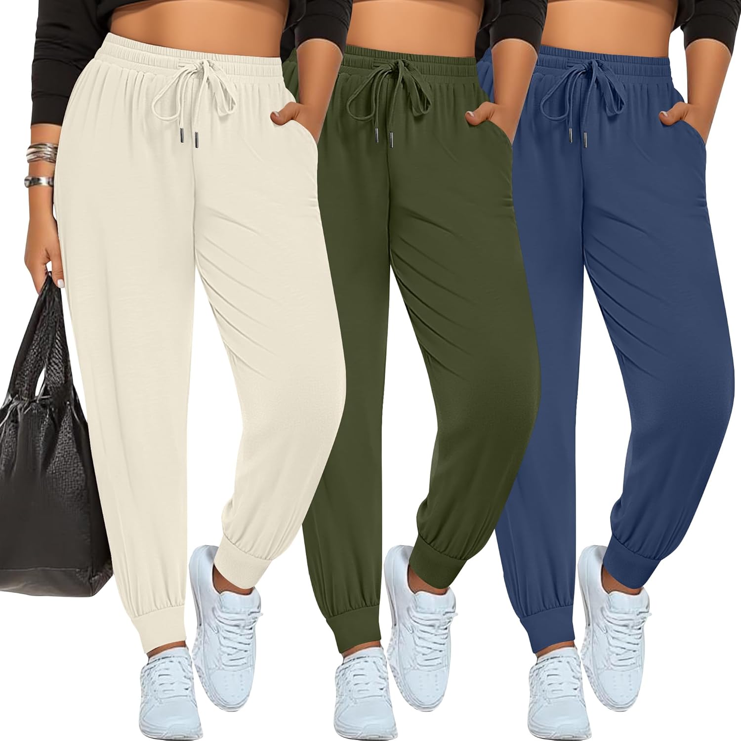 Features: Women's plus size sweatpants with pockets can pair with t shirt for daily look, or with a sweat shirt, tank and board shoes for a classic street look, also looks cute when paired with sneakers or attire The women drawstring sweatpants are available in different sizes, please refer to the size chart before purchasing and choose the size that suits you Specifications: Material: 60% Polyester, 35% Cotton, 5% Spandex Package includes: 3 X Women's Plus Size Sweatpants Notes: Manual measurement, please allow slight errors on size. The color may exist a slight difference due to different screen displays.