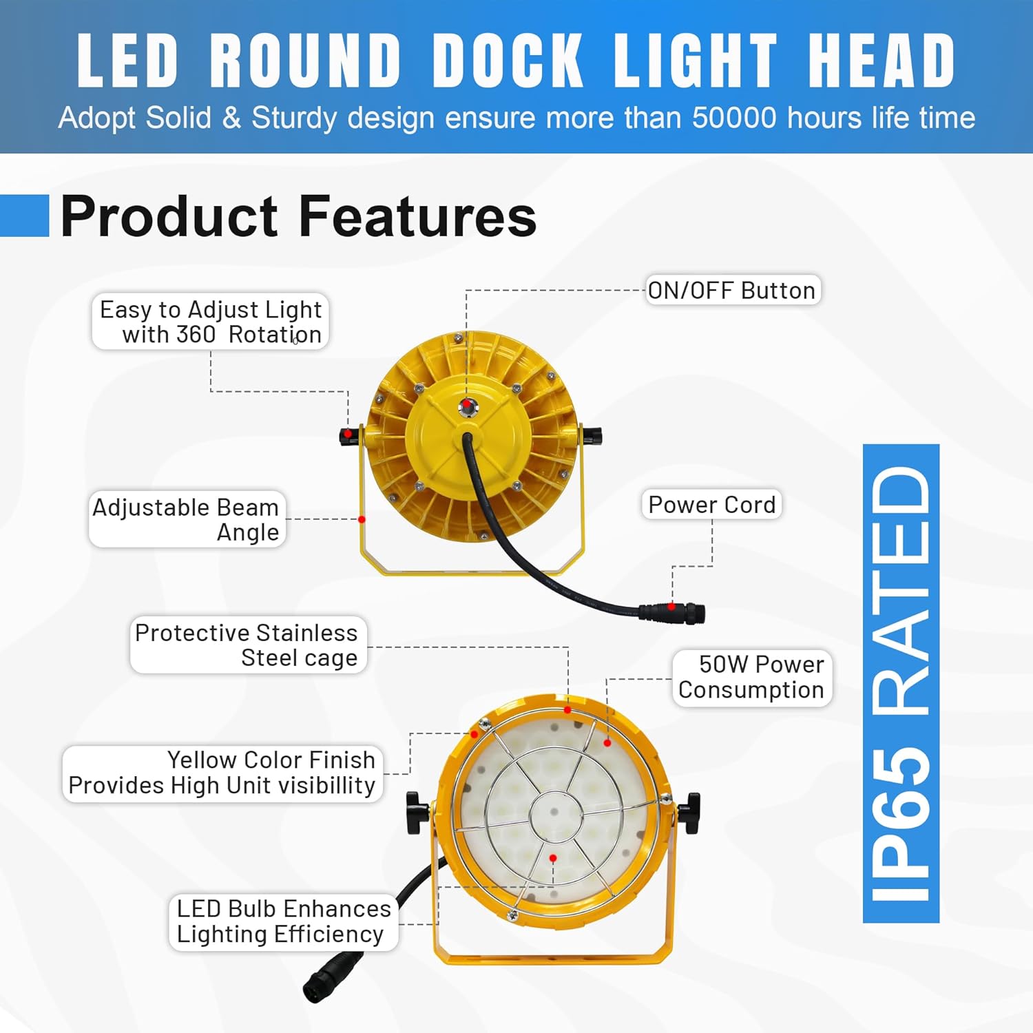 • FLEXIBLE SWING DIRECTIONS: Gain unmatched flexibility by adjusting the lighting angle to your specifications. The multiple swing directions of the bracket arms empower users to fine-tune the illumination, facilitating optimal lighting coverage while minimizing interference with warehouse operations.