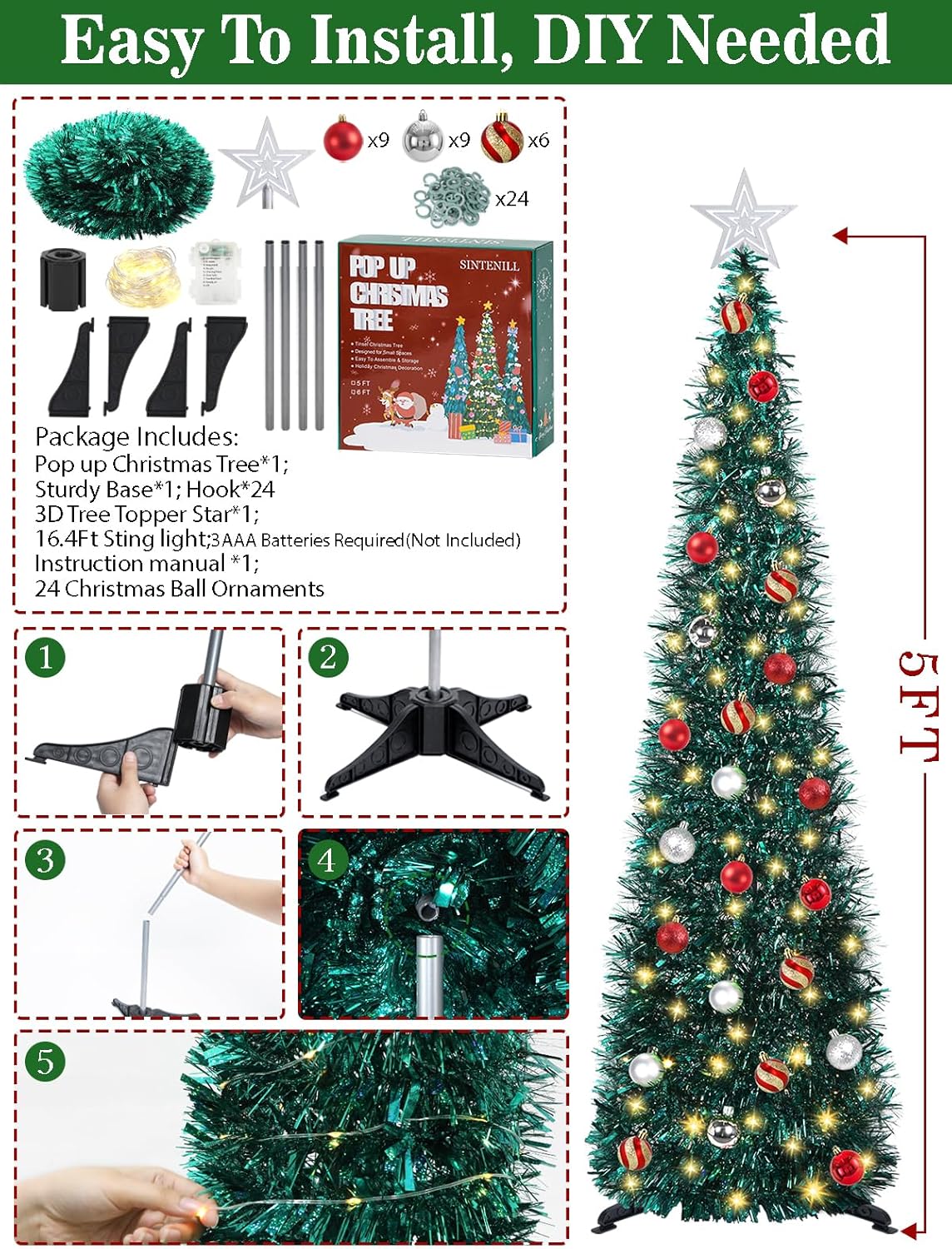 | Included Components | metal pipe fittings*4, base*4, string light *1, tree top star*1, tree*1, Christmas Ball *24, hook*24 |