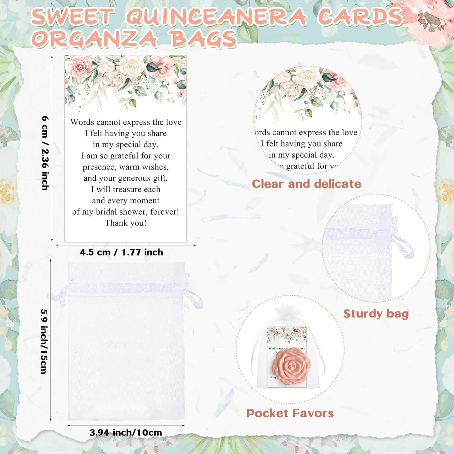 Features: Broad usability: Besides bridal showers, these wedding party thank you gifts are suitable for a variety of events like bachelorette parties, weddings, engagement parties, or other occasions. Their universal appeal makes them a versatile addition to events. Bridal party theme: Designed keeping in mind the bride's party theme, fit for your bridal shower. With a compact travel mirror of green rose color and thank you card, these wedding party favors for guests will blend in and elevate your event aesthetics. Specifications: Main material: Mirror: plastic Card: 250g coated paper Color of mirror: green Size: Mirror: about 2.56 x 2.36 inches/ 6.5 x 6 cm Card: about 3.94 x 2.56 inches/ 10 x 6.5 cm Package includes: 50 x Compact travel mirrors 50 x Thank you cards 50 x Organza bags Notes: Manual measurement, please allow slight errors on size. The color may exist a slight difference due to different screen displays.