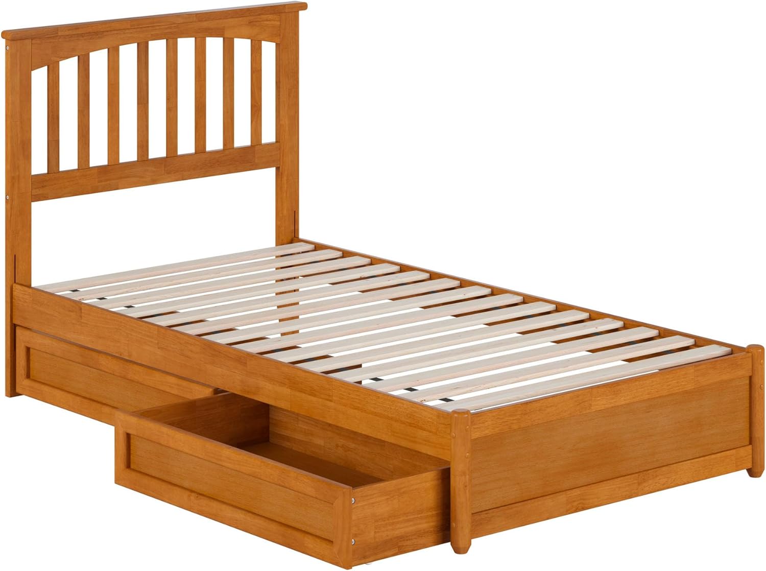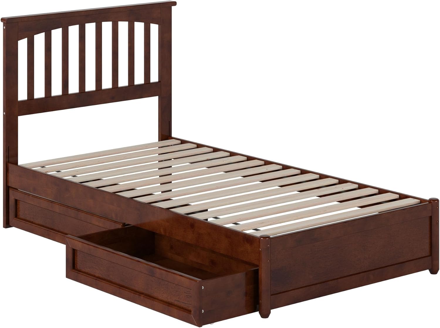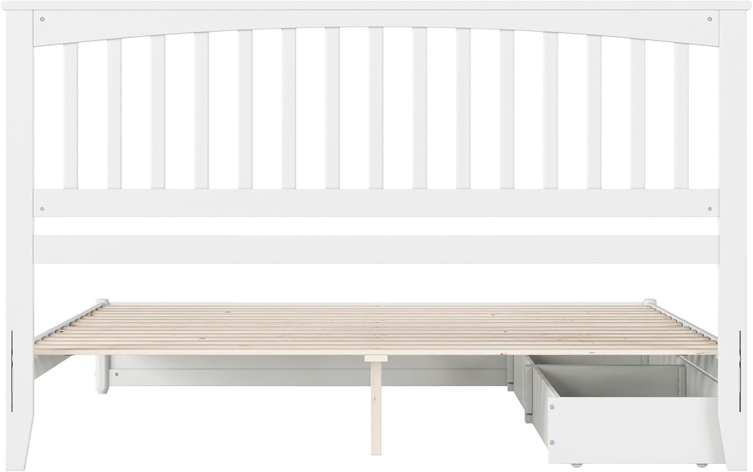 Introducing the Everett Platform Bed with Panel Footboard and Storage Drawers – a timeless statement piece that adds enduring charm to your bedroom. The mission-style headboard features elegant vertical slats that beautifully complement the solid wood panel footboard. Available in versatile finishes such as White, Walnut, and Light Toffee, the Everett effortlessly harmonizes with your existing decor. Experience a restful night's sleep on the meticulously crafted frame with wood slats, eliminating the need for a box spring or foundation. Beneath the frame, you'll discover two generous storage drawers that effortlessly slide out, providing a clutter-free environment for your belongings. For added convenience, the Everett includes an attachable USB charger, ensuring your devices stay charged while you relax or sleep. Choose from a variety of sizes, including Twin, Twin XL, Full, Queen, and King, to find the ideal fit for your space. Rediscover your style and embrace the timeless and elegant essence of the Everett Platform Bed with Panel Footboard and Underbed Storage Drawers.