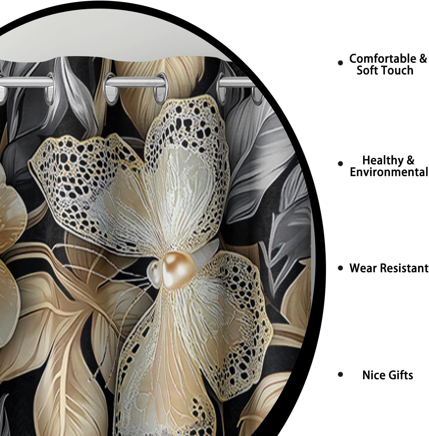 • Grommet Construction: Each curtain panel has silver grommets on top.ring (1.6-inch inner diameter) fits easily with standard curtain rods, comparable with most rods. Easy to hang, and slide smoothly