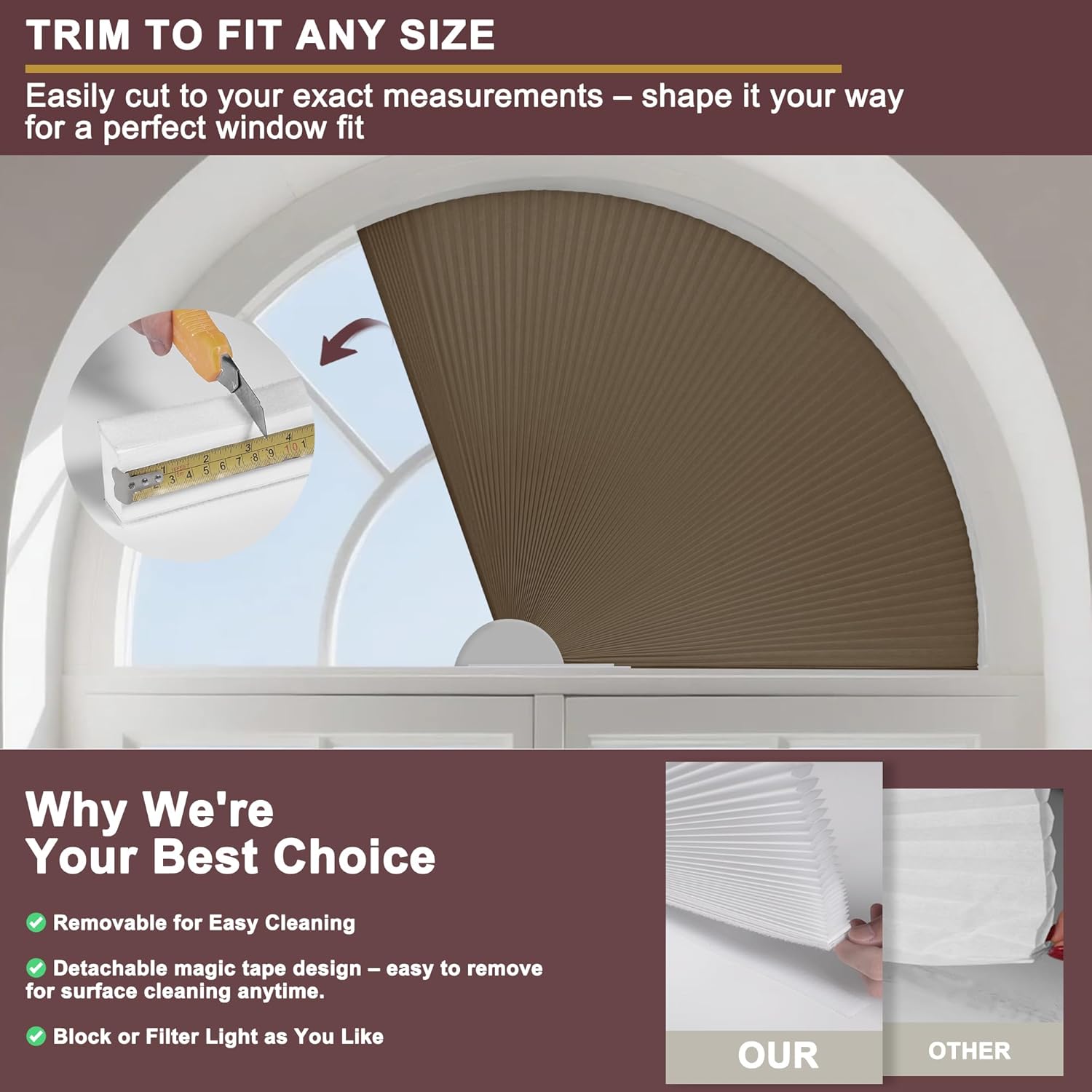| Included Components | Fan-shaped base, Stylish Cellular Shade, Velcro |