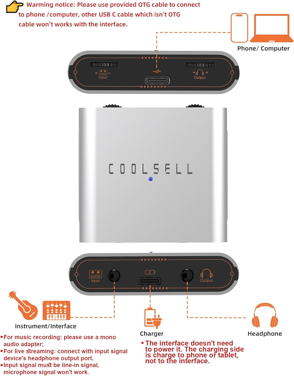 | Compatible Devices | Guitar, Bass and other instruments, Phone, iPad, Laptop, PC |