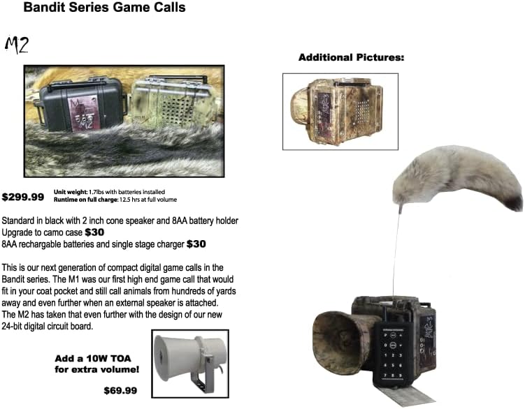 • 1lb 9ozs with batteries installed Rechargeable (batteries and charger available seperately) Reliable remote control up to 400 yards and beyond Holds 100 sounds Glow in the dark buttons Supports external speaker (ext speaker jack on unit)