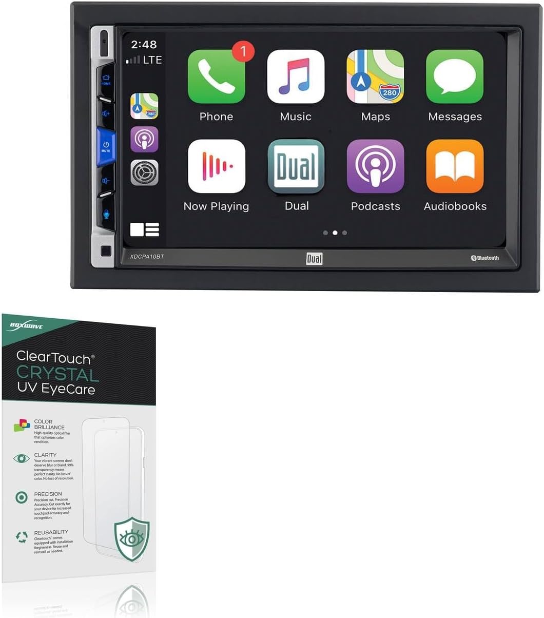 BoxWave Screen Protector Compatible With Dual Electronics XDCPA10BT.What you do on your device is your business, not anyone else's! That's why you need the ClearTouch Anti-Glare Privacy (2-Pack) from BoxWave!The ClearTouch Anti-Glare Privacy works LIKE MAGIC! When you look at your screen straight on, you can see your screen clearly. If someone tries to peek at your screen from the side, the ClearTouch Anti-Glare Privacy AUTOMATICALLY OBSTRUCTS the peeper's view from 25 degrees and beyond, ensuring your privacy!The MATTE SURFACE of the ClearTouch Anti-Glare Privacy not only gives a futuristic look, but also functionally disburses glare so that it does not reflect back into your eyes.We have designed the ClearTouch Anti-Glare Privacy to fit specifically to your device, so that you don't even notice it's there protecting your screen! All ports and buttons will be FULLY ACCESSIBLE.Just clean your screen with the included microfiber cloth and line up the ClearTouch Anti-Glare Privacy on your screen. After making sure no dust settles on your screen, peel off the bottom layer, and the glueless adhesive will AUTOMATICALLY cling to your screen!Utilizes NEXT GEN material that is strong and flexible, ensuring your peace of mind when using your device. Guards your screen from scratches or cracks just as well as glass without being brittle to prevent chipping and cracking.ClearTouch Anti-Glare Privacy: For your eyes only!Disclaimer: ClearTouch Packaging may not be the exact one pictured on this listing.*** PLEASE NOTE, XDCPA10BT DEVICE NOT INCLUDED ***