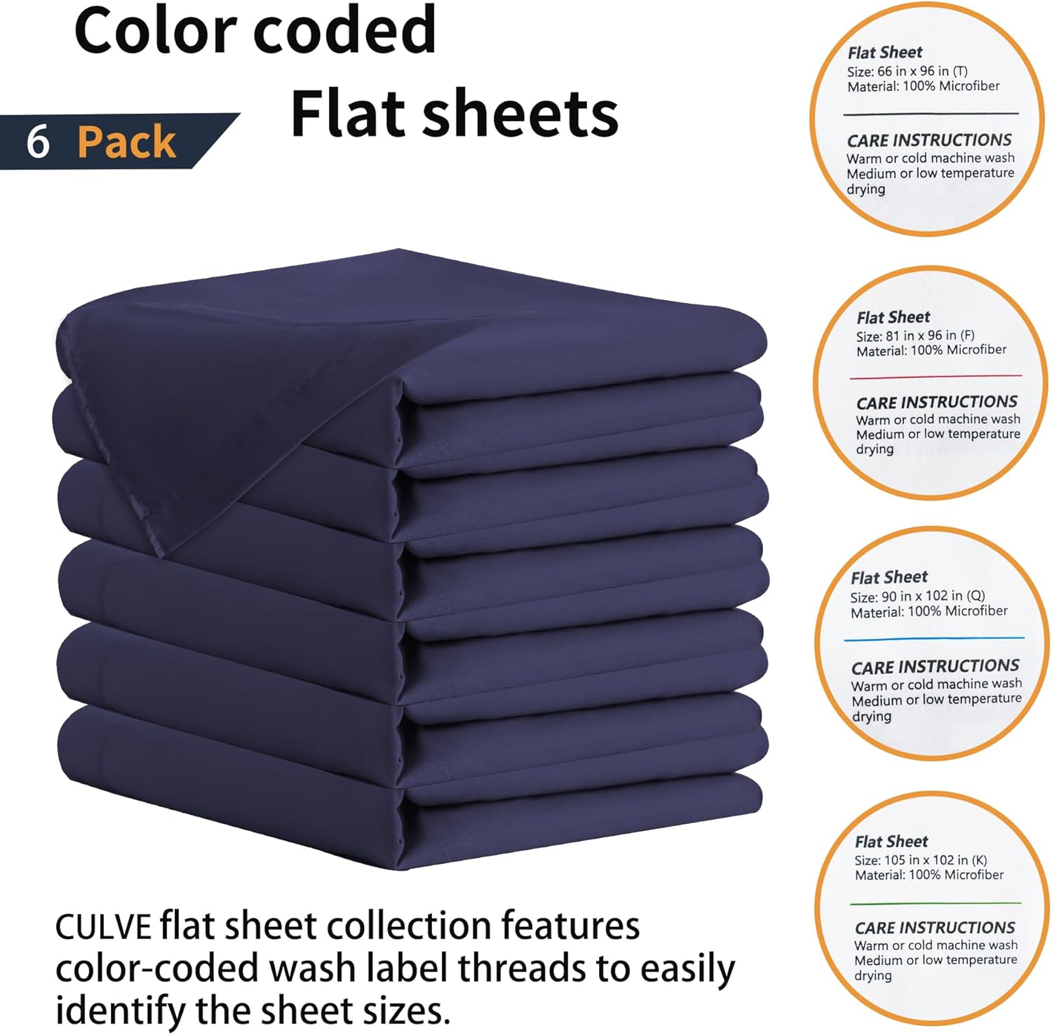 Bulk Queen Flat Sheets Only, White 24 Pack Quick Sort Top Bed Sheet, Color-Coded Hem Threads, Wrinkle-Free Shrinkage Durable Microfiber Hotel Motel Airb&bs Essentials for Hosts, 90"x102"