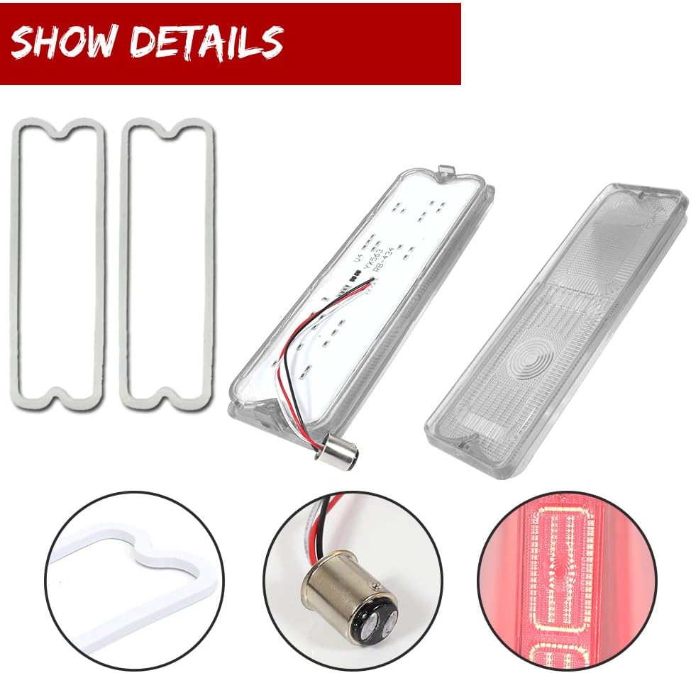 Feature: 100% Brand new and quality Clear lens LED Color: White & Red Good for 1967-1972 Chevy C10 & GMC Trucks (Fleetside/Wideside) Powered by 40 pieces high power SMD chips with white & red design LEDs for tail end Xenon white LED lighting for backup light; Red LED lighting for tail light / rear fog light Built-in CAN-bus, Error free DOT SAE approved Replace the original bulb-less cover with LED strips lamps in clear lens Great way to upgrade your car with better eye-catching Fit for: 1967-1972 Chevy C10 & GMC Trucks (Fleetside/Wideside) Package included:: One Pair (L&R) Clear Lens LED Rear Reverse Backup Light w/Gaskets Installation: To install these LED backup bumper lights, you simply need to remove the stock backup light lens and directly replace back with these LED Lamps and then tap the wires accordingly Plug the socket, connect the extra yeollow wire to tail lights positive Note: Professional installation is highly recommended!