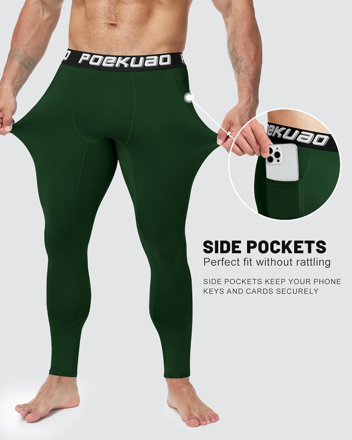 Discover our Poekuao Compression Pants for Men - designed to enhance your training performance! Made from durable, high-stretch fabric with four-way stretch, tear-resistant, moisture-wicking and quick-drying properties, these pants provide continuous support and excellent comfort for high-intensity fitness, outdoor running and daily training. The comfortable cut and tighter and more sculpted line silhouette help you stand out in your movements with confidence.To keep your Poekuao Compression Pants in the best condition, please refer to the following care suggestions:Machine washable or hand wash (laundry bag recommended)Avoid hot water and high temperature soakingRecommended to dry naturally, do not use a dryerCan be ironed at low temperature, avoid direct high heat contactChoose Poekuao Compression Pants for performance, comfort and durability, and accompany you to every training challenge!