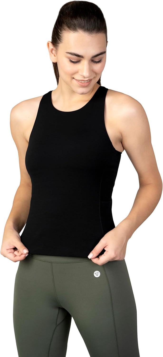 A support tank you'll want to practically live in after you discover you basically never need to wear a tight sports bra under a tank top again. Either way, it's a 2-for-1 steal! The high neckline and racerback design ensures unrestricted movement and excellent ventilation. You'll find convenient stash pockets on both sides for your essentials. Crafted from our CorEnabl fabric which is extremely soft on the skin and moves seamlessly with you; this tank is perfectly suited for yoga, gym workouts, and comfortable all-day wear, making it a versatile addition to your wardrobe.