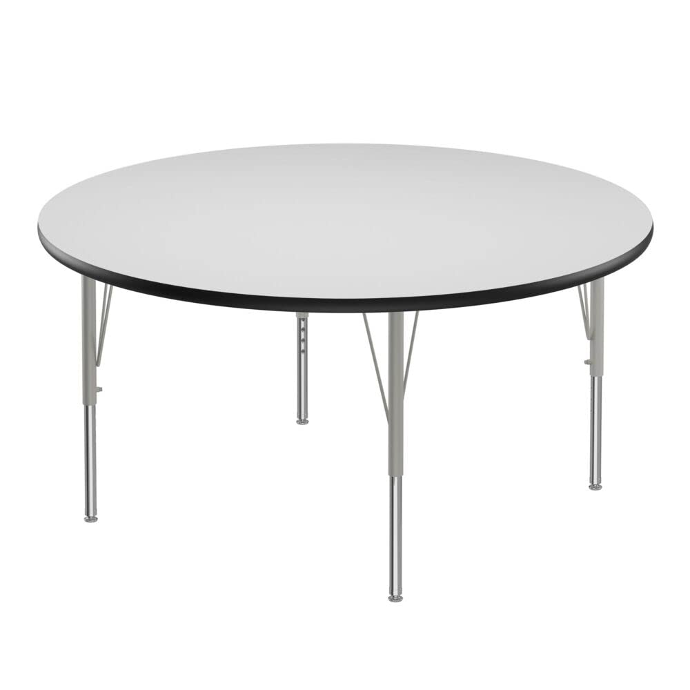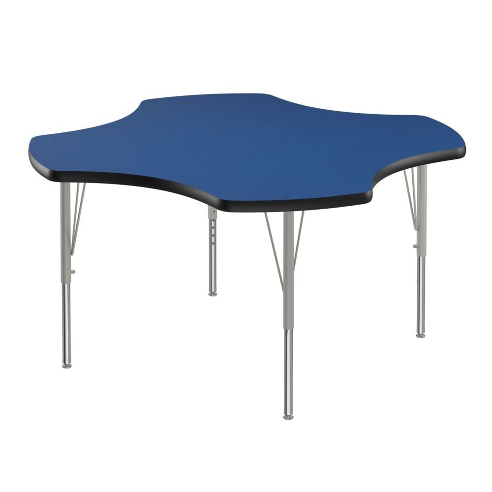 Correll Height Adjustable Activity Table. Table Size is 48" Octagonal Shaped. Height adjustable from 19" to 29" in 1" increments (perfect for kindergarten to adult) Speedwrench included for fast and secure height adjustments. Blue Top, Black Edge, High Pressure Laminate resists scratch's, paint, markers, crayons, and food and juice stains far better than melamine. 1-1/8" High Density particle board core provides strength. Heavy Duty legs include oversize hairpin brace and shouldered set screws for maximum safety. Shoulder on leg set screw provides an extra measure of security even if the legs are not properly tightened. Leg mounting brackets are pre attached with 7 screws plus 3 additional screws in the leg plate. Silver/Chrome Legs. Tables are custom built to order and Made in the USA. YOU CAN COUNT ON CORRELL: Correll was established in 1969 and has been in business for over 50 years. With our outstanding Standing Customer Service, innovative new product lines, and the largest selection of Folding Tables available from any manufacturer, now, more than ever, you can count on Correll. In an age where it seems like everything is imported, over 90% of Correll products are still Made in the USA at our factory in Arkansas