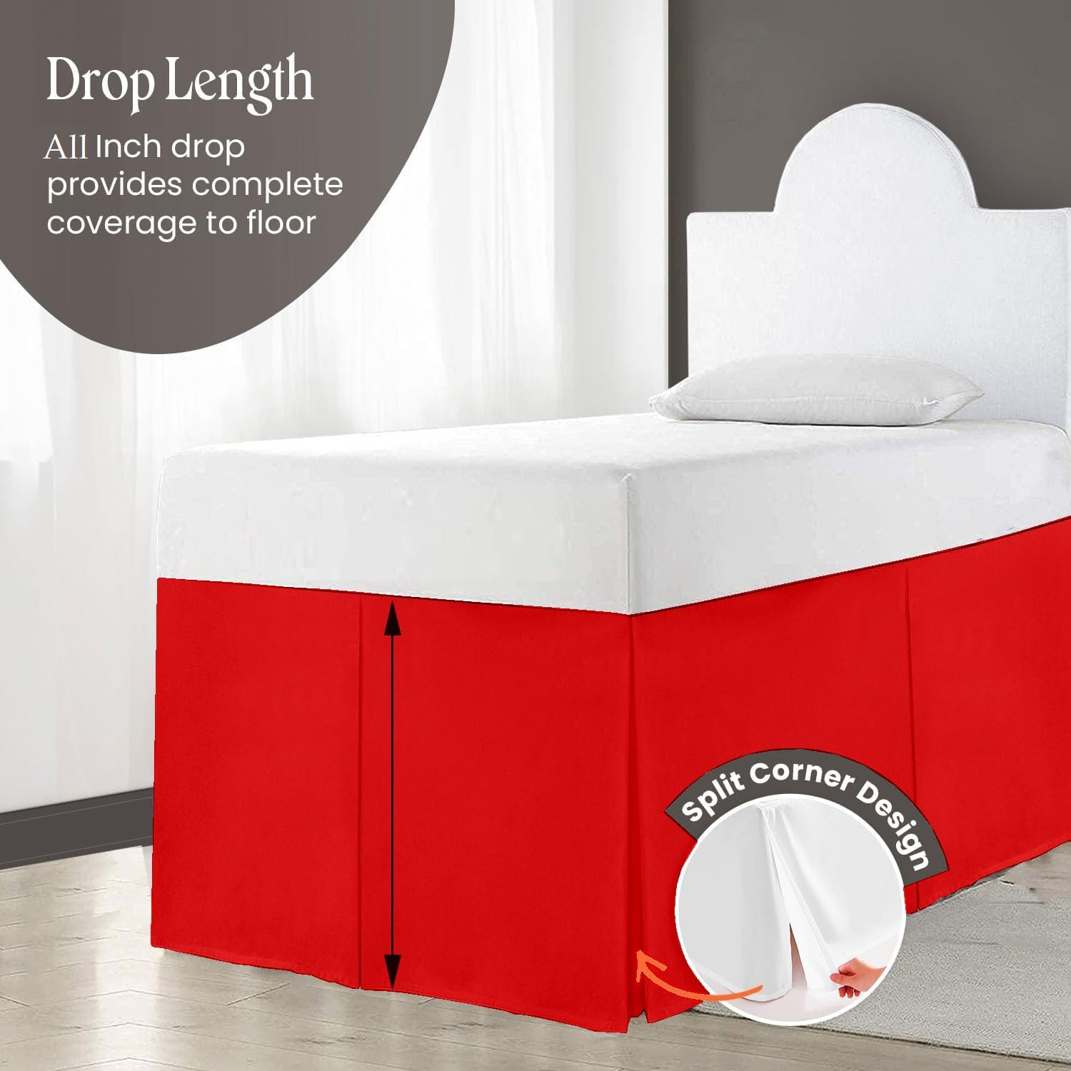34 Inch Drop Twin XL Size Dorm Bed All colors Solid Bed Skirt Stylish Split Corner & Box Plated Split Corner Easy Fit Easy Care Fade & Wrinkle Resistant- Micorfiber
