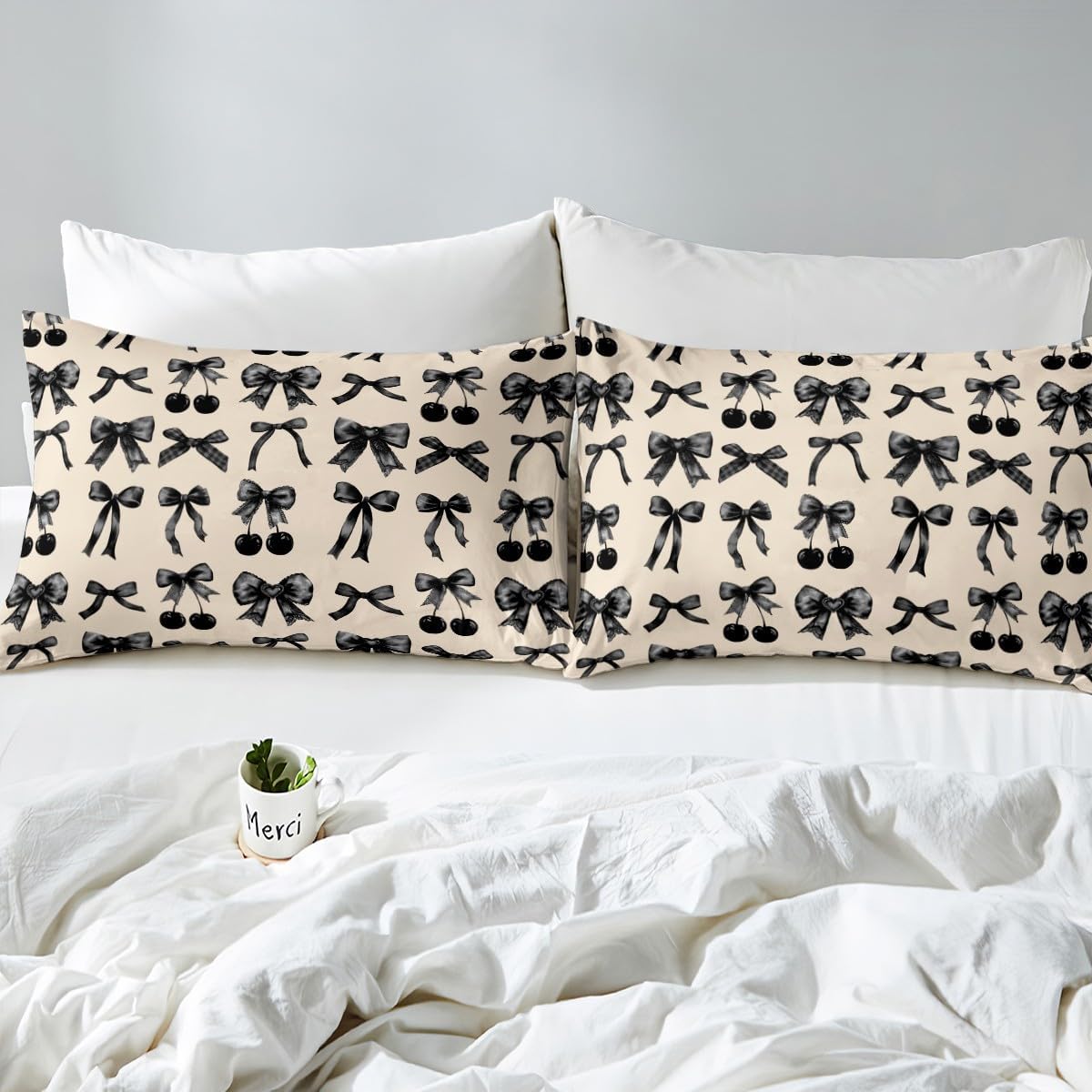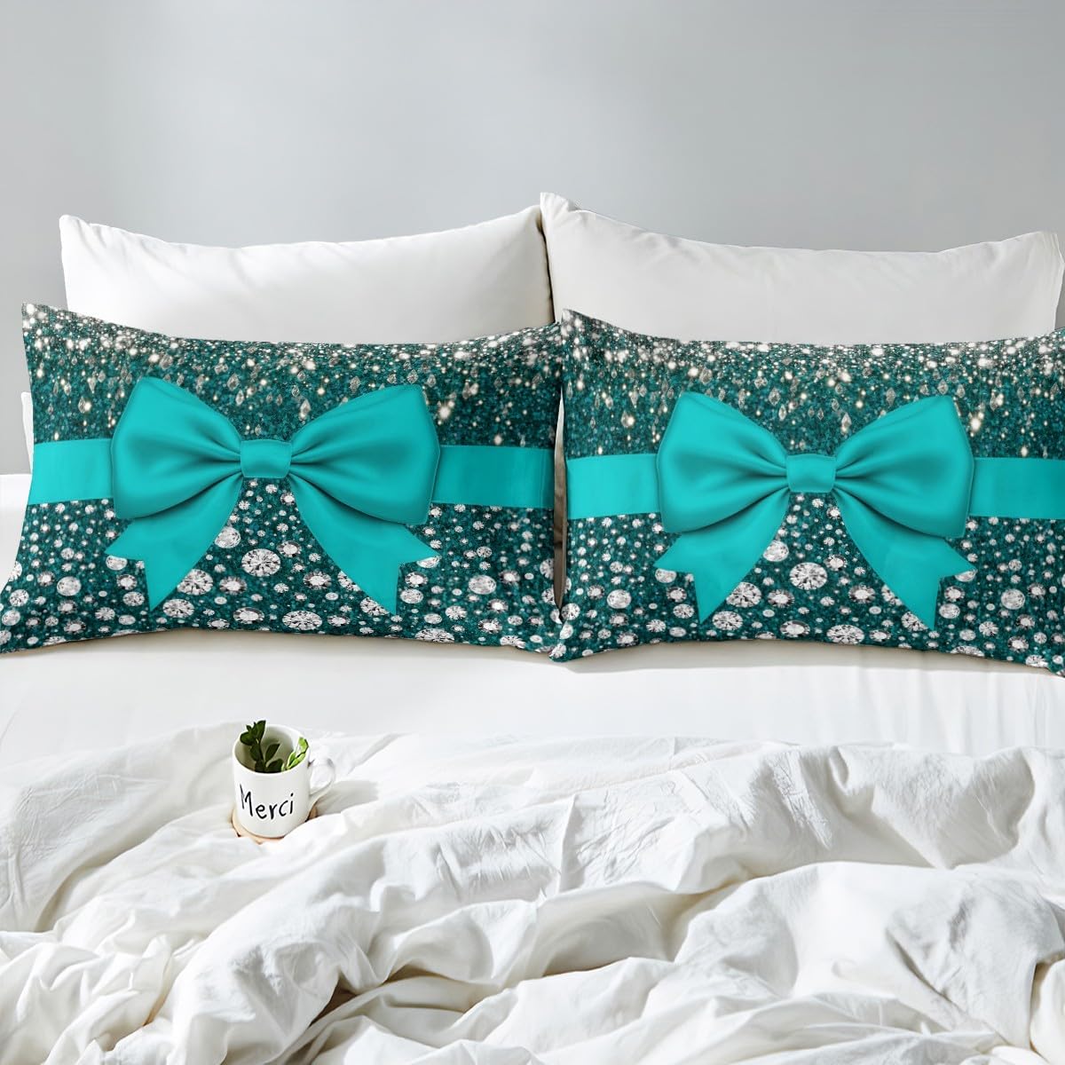 Cute Ribbon Bowknot Fitted Sheet Simple Green Ink Fluid Art Full Size Bed Sheets, Watercolor Bow Knot Sheets Princess Bow Tie Bed Set, Kawaii Room Decor