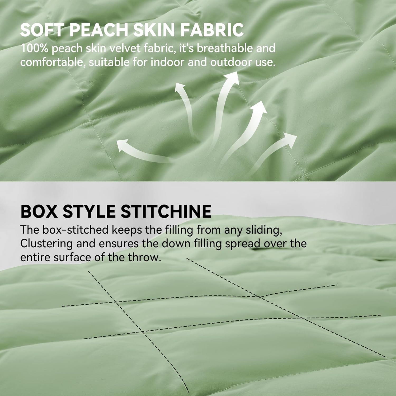 • โ˜บFine Workmanship: Our 50"X70" quilted blanket with box stitching design prevent down and feather from shifting. It ensures the down filling spread over the entire surface of the throw which can make the level of warmth and coziness is the same. Also the odor repellent will prevent chemical smell, so the cozy down throw will make you no need to worry about the smell.