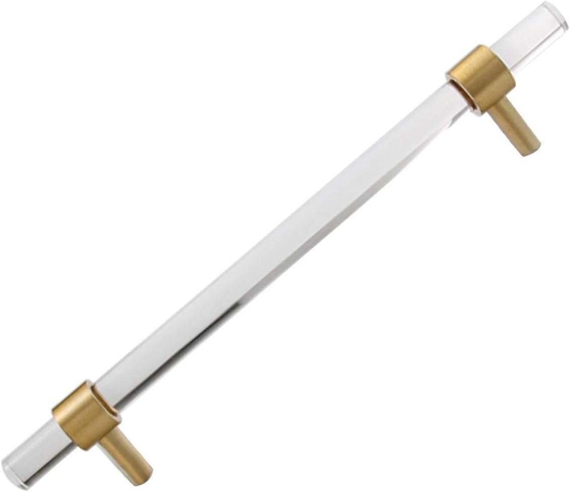 • MATERIAL: Crafted from clear acrylic and gold plating to createfashionable contemporary cabinet hardware that offers the comfortable touch instead of the cold metal feel.