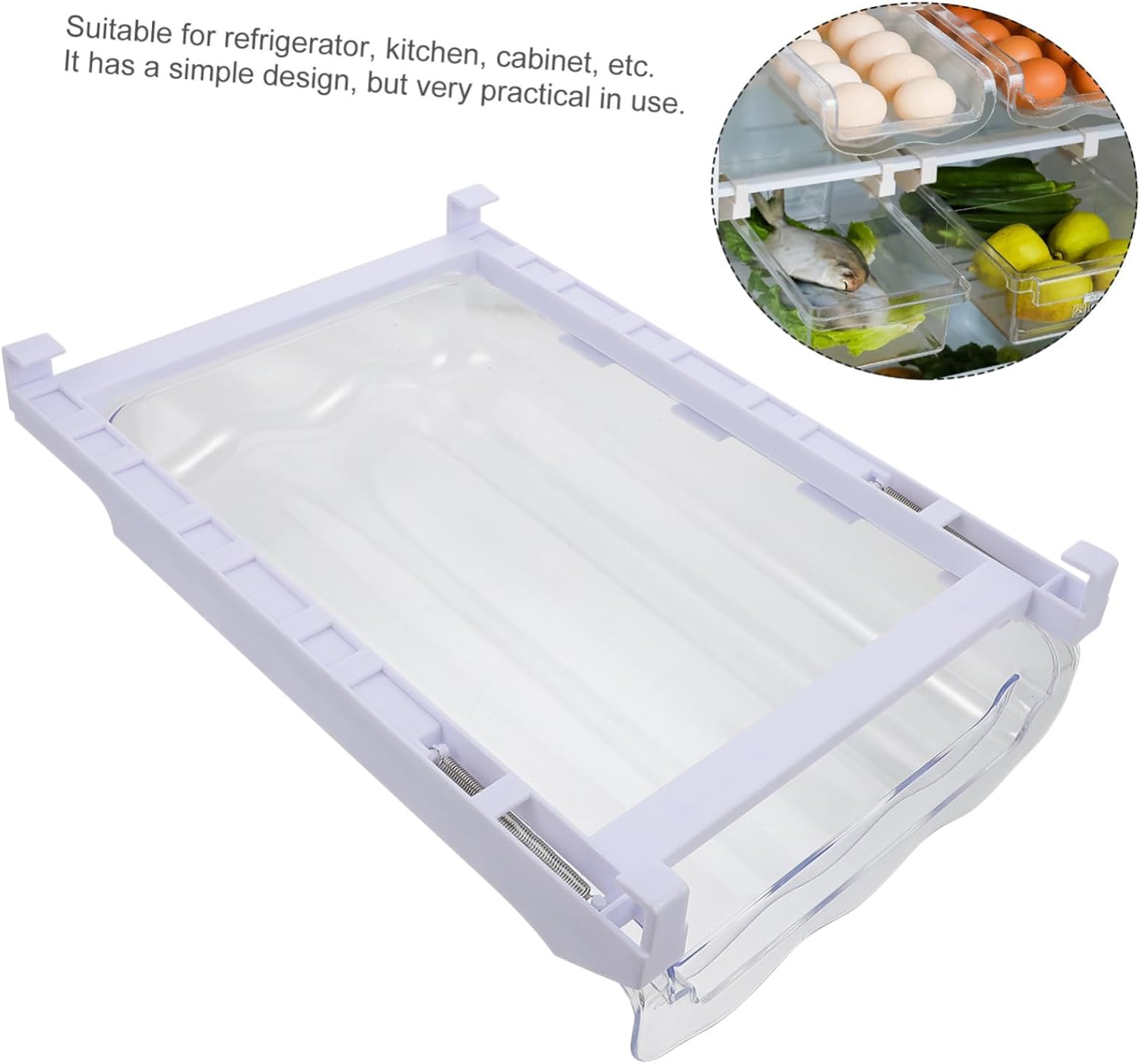Package List 1 x egg storage drawer Features - Color: White refrigerator egg holder - Material: Plastic Fridge Egg Holder - Drawer type design, this egg storage drawer allows you easy access to all your eggs egg container for refrigerator. - material, low temperature resistance, suitable for storing in the refrigerator, and easy to wash and clean egg container for fridge. - Neat and beautiful, space, keep refrigerator organized and clean egg container. - The various things in the large fridge are well organised, sorted and stored to make life easier egg storage under shelf. - Suitable for fridge, freezer, pantry, kitchen cabinets, countertop, etc. Store eggs safely while preserving their freshness egg holder.Goods Informationegg dispenser for fridge It is very easy to push forward or pull out.plastic egg holder The storage box makes use of space under the fridge glass plate well.egg dispensers Ideal for refrigerators, freezers and kitchen cabinets for storing spices, vegetables, meat, snacks, products and other items