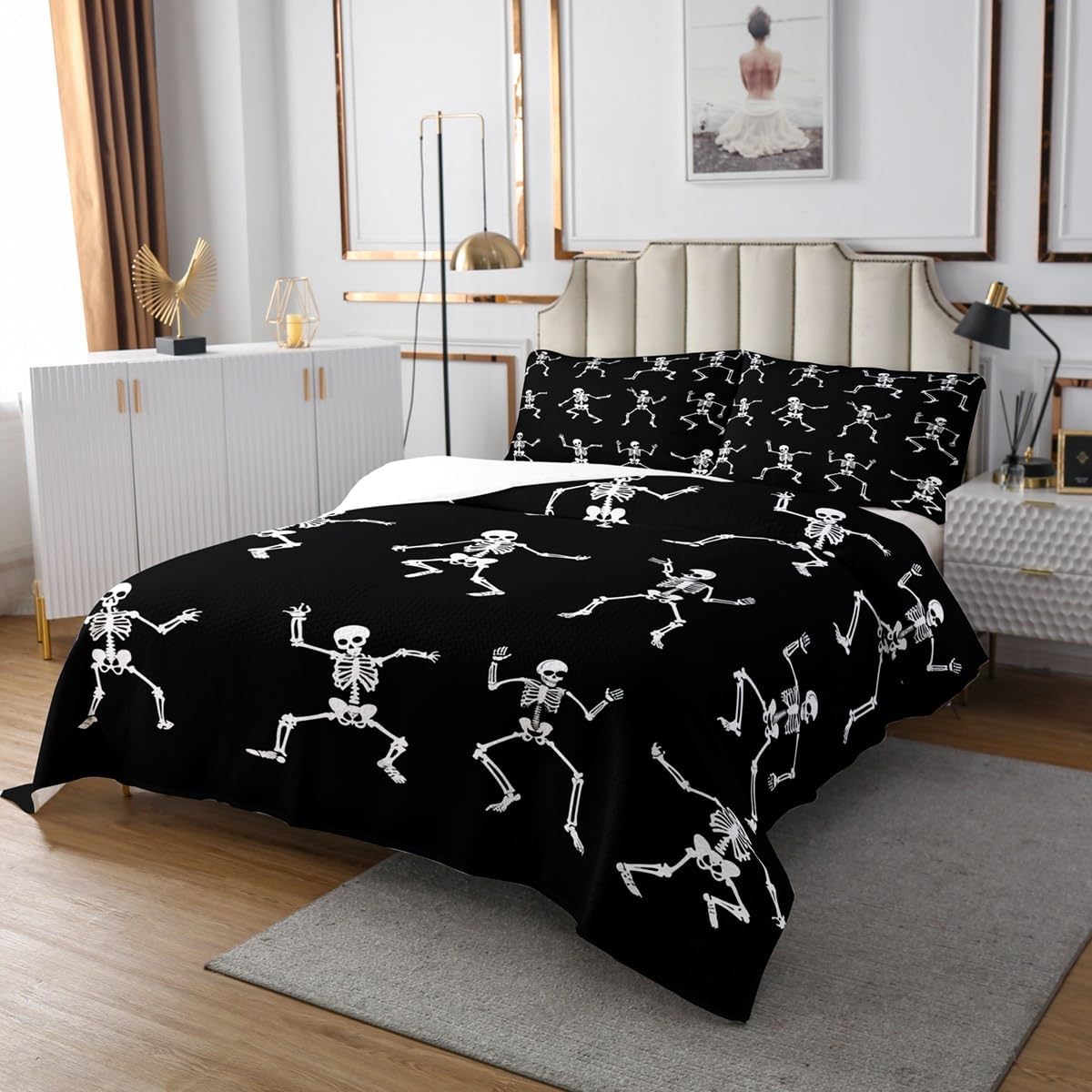 Erosebridal Cartoon Ghost Quilt Set Gothic Bedspread Set Twin Halloween Decor,Santa Hat White Silhouette Coverlet Set Christmas Lights Quilted,Xmas Rainbow Kawaii Room Decor