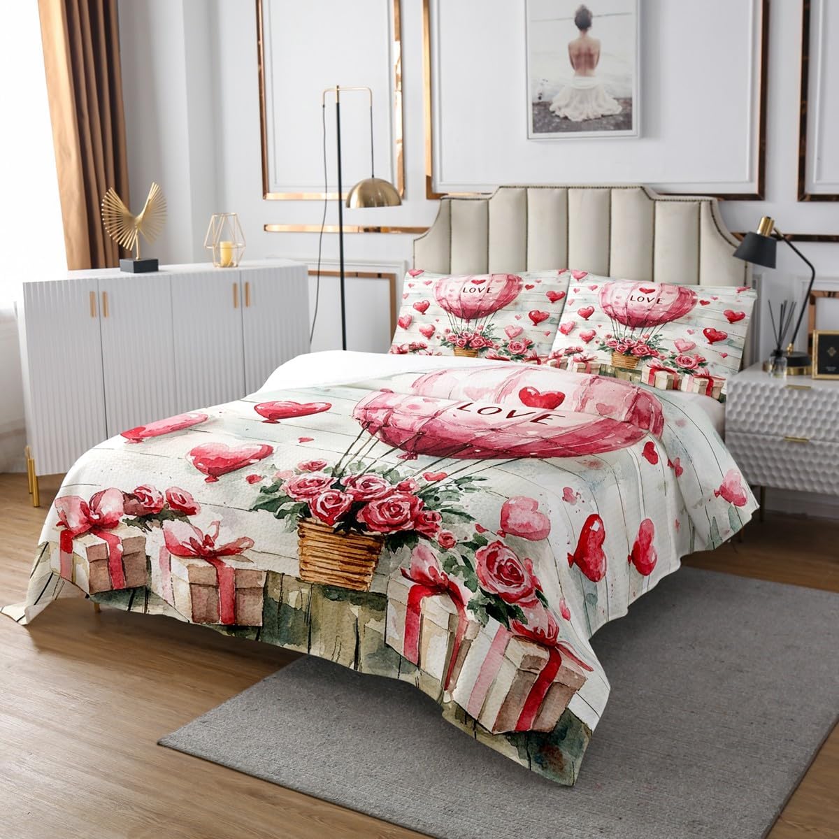 Good presents and blessings Makeover your bedrooms every season with our bedspread sets: Good item for your room,girls boys youth room,master bedroom Also a great present idea for your mom,dad,sister, brother,grandma,wife,husband,daughter,son and all other beloved Size Information: 1 Twin Size quilted bedspread 68"W x 90"L and 1 quilted pillow sham 30"W x 20"L 1 Queen Size quilted bedspread 90"W x 90"L and 2 quilted pillow shams 30"W x 20"L 1 King Size quilted bedspread 104"W x 90"L and 2 quilted pillow shams 36"W x 20"L Useful and practical A luxurious product for homes,dorm rooms,hotels,guest rooms:Practical to use for being polyester,feels like cotton which is Soft and Breathable Unique design Vivid Colors won't fade thanks to new 3D digital printing methods: These unique designs match well with various color palettes of your rugs,curtains,headboard,furniture and all other decor accessories Personalized As manufacturers of digital printed home textiles,we follow current trends and bring you the latest home fashion Either a present to your family or friend,relative or boyfriend girlfriend, or to yourself,the item should be interesting and authentic Note The Bedspread and Pillow Shams are printed on the Front Side Only the back of them are white colored: Comforter is Not Included in the set