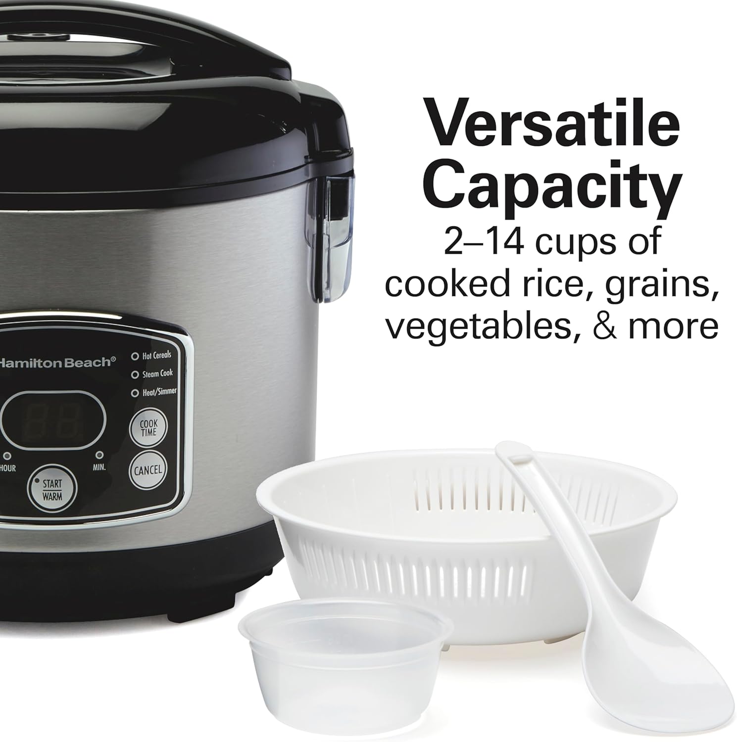 Save storage space while enjoying complete cooking flexibility with the Hamilton Beach® Compact Multi Cooker. It combines the functions of a rice cooker, egg cooker, slow cooker, steamer and more. The 1.5 qt. capacity is perfect for 1-2 people.