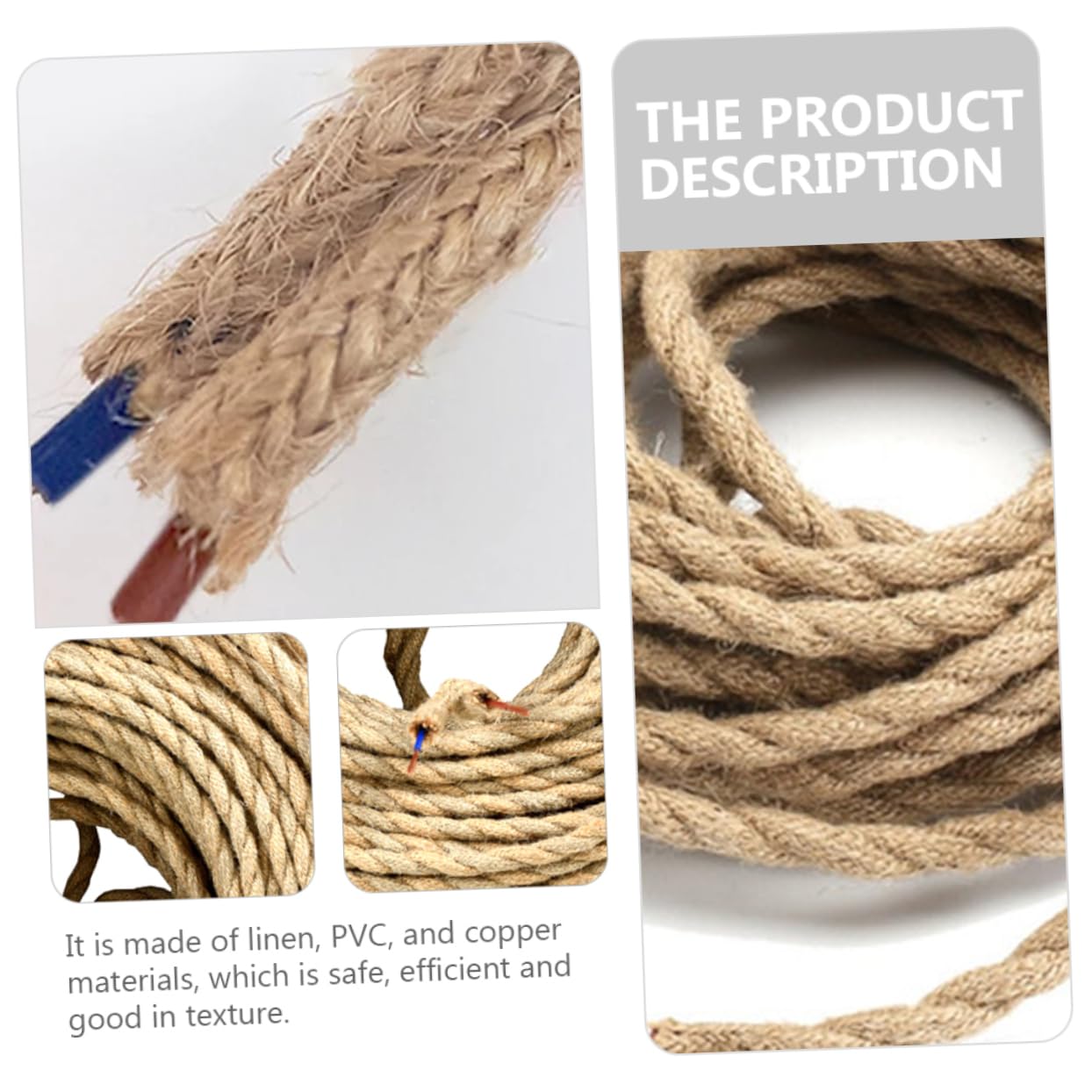 Package List 1 x chandelier rope (3-core) Features -Power: Maximum 300W Rope Wire Cord. -Size: About 1000.00X0.40X0.40cm/393.00X0.16X0.16inch Light Rope. -Material: Linen, PVC, Copper Hanging Light Accessory. - section: 2x0.75mm²/3x0.75mm² Chandelier Rope Cable. -Voltage: 110- Rope Cable. -Color: Khaki Rope Wire. -The perfect combined with lamp holders and lamps will bring you a better visual enjoyment Rope Cable for Lighting. -It is not only suitable for living room, dining room, basement, farmhouse and other home decoration, but also suitable for special occasions such as weddings, parties and celebrations DIY Pendant Lamp Rope. -It is easy to install and can apply decorations quickly and easily. a for you Rope Wire for Lighting. -The chandelier rope with fashionable appearance can add sophistication and style to your home, which is various decoration schemes Hanging Light Wire. -With fine workmanship and good texture, our chandelier ropes are safe and reliable, and have a longer service life Light Rope.Goods DescriptionHanging Lamp Accessory It is made of craftsmanship and safe materials, with excellent durability and practicality.Hanging Light Accessory Reasonable design makes it efficient and practical, which can perfectly meet your DIY needs. Rope Wire Are you looking for professional, practical and chandelier twine? Our products will be your