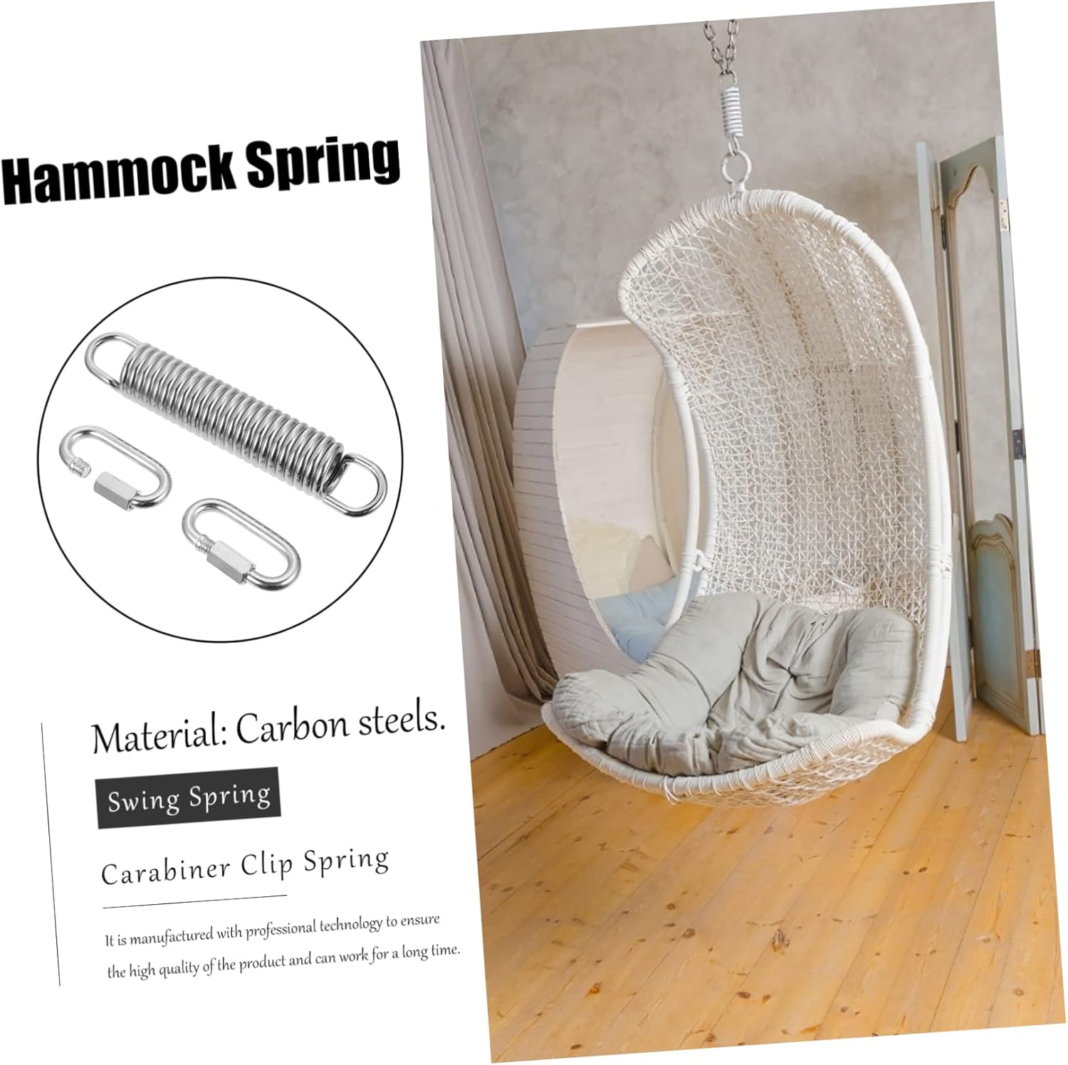 Package Include 1 x spring Characteristics - Size: 20.00X3.50X3.50cm/7.86X1.38X1.38 inch swing springs. - Color: Silver hammock chair hanging kit. - Material: Carbon steels . - Pure relaxation: with the steel spring you can refresh your hanging chair and make it the demanding seat at home Metal Carabiner Clip Spring. - You can travel, beach visitors, tent campers and fellow winners or just family entertainment with these accessories on hammocks outdoor swings. extension spring - Adopt superior carbon steel material which can exactly meet your sturdy needs Hammock Spring. - Suitable for indoor and outdoor use. You can your hammock without hesitation in the garden or on the balcony outdoor swing springs. - The hanging chair swing spring set allows a gentle and comfortable swing, swinging and turning while seeing your suspension by absorbing shocks porch swing springs.Goods Informationporch swing springs Are you looking for a sturdy and durable spring swing for you to plan to DIY a wonderful swing for home? If so, why not try this professional product? It adopts superior carbon steel material which can exactly meet your needs.pogo Believe me, you'll love it very much if you try!