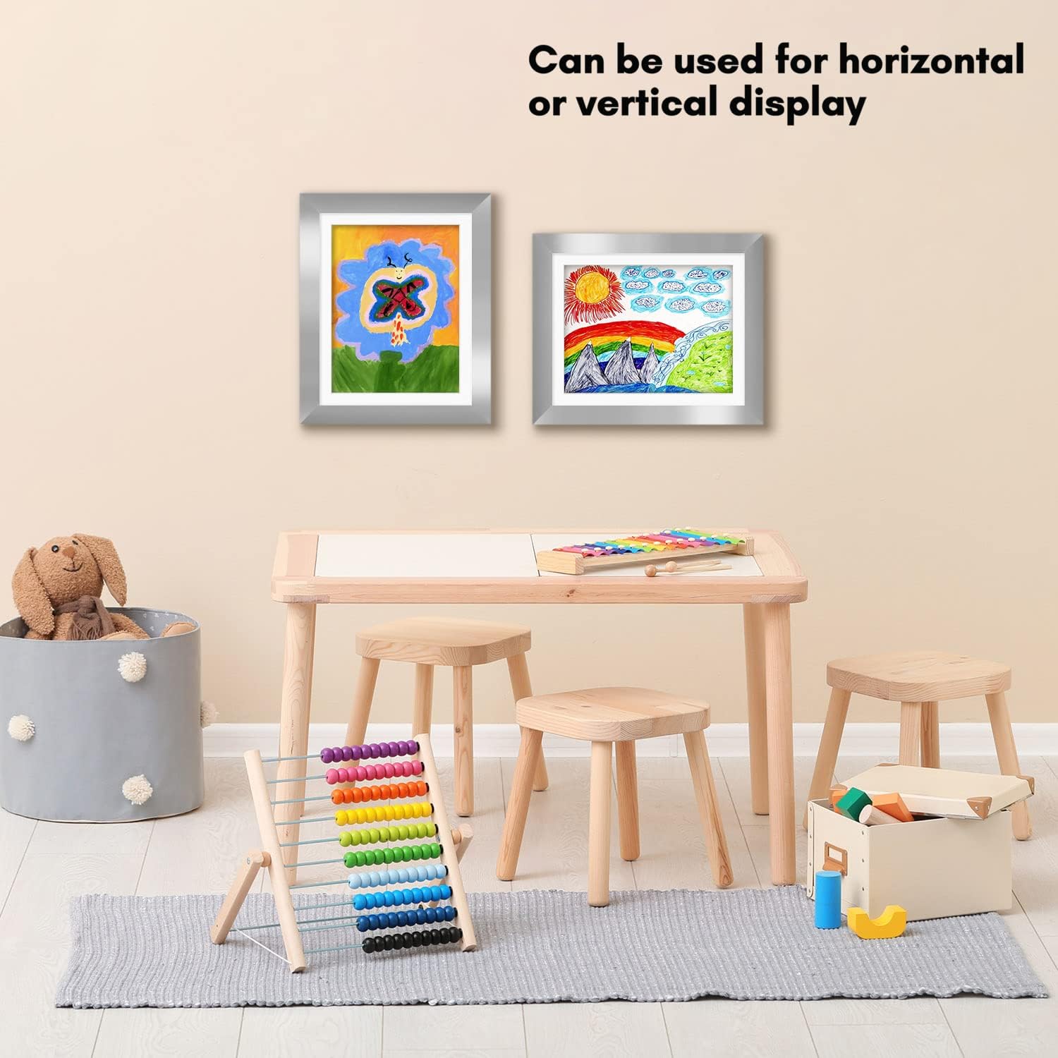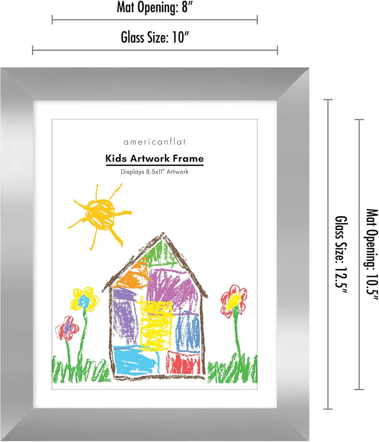 Introducing the Americanflat 10x12.5 kids art frames, from the My Mini Masterpiece collection, designed to keep your little artist’s creativity on display and out of that cluttered kitchen drawer. This art frame for kids art not only elevates your child’s art but also serves as a practical storage solution, featuring a built-in compartment that holds up to 100 pieces of letter-sized paper. Whether it’s their first scribble or their latest “abstract phase,” you’ll have plenty of room to showcase and save their best work. Our kids art picture frame accommodates 8.5x11 art with a mat or 10x12.5 without, making it easy to celebrate every creative milestone. The convenient front-loading design allows you to change artwork easily without removing the frame from the wall, offering a hassle-free way to display new masterpieces. Constructed from durable engineered wood (MDF) molding, these timeless kids frames include built-in keyholes for horizontal or vertical wall display. More than just practical, our child artwork frame with storage makes a heartfelt gift for parents and loved ones, perfect for occasions like Mother’s Day, Father’s Day, and birthdays. At Americanflat, we believe great art deserves a great frame - even if it’s made with crayons and glitter. Thoughtfully packaged for safe delivery, these picture frames arrive ready to honor your child’s creativity in a way that’s stylish, functional, and truly memorable.