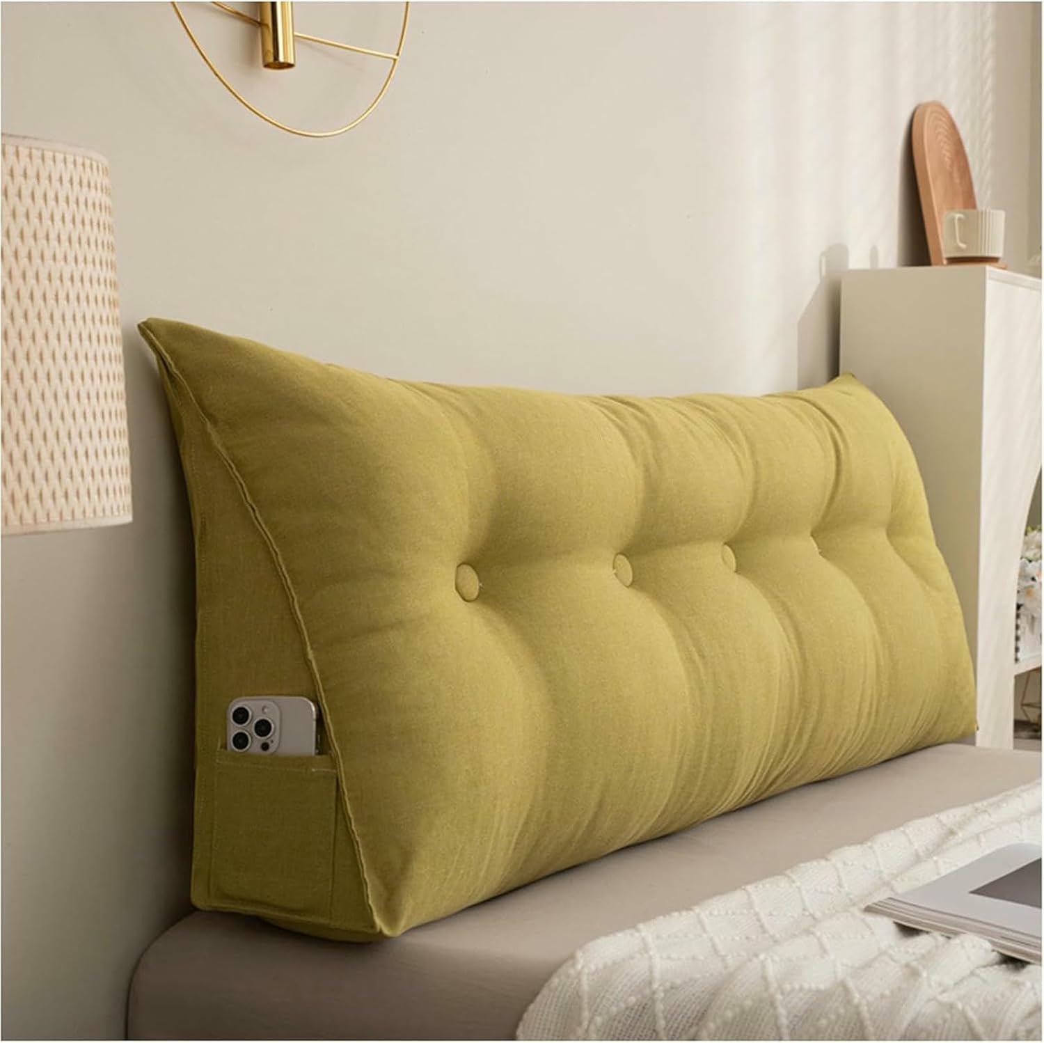 • ●Easy to Clean:The Wedge Headboard Pillow looks more three-dimensional and full due to the decoration of the same color buttons. There is a zipper at the bottom, which is removable and machine washable.