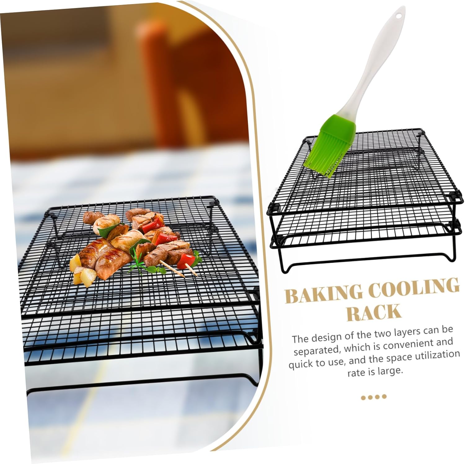 Package Include 1 x Stackable Two-Tier Cooling Rack 1 x Oil Brush Characteristics -Material: Carbon steel cooling tray for baking -Color:Black cooling rack for baking -Size:6.80X6.80X1.00cm/2.67X2.67X0.39in stackable baking rack -The cooling rack made of carbon steel material has delicate joints and all parts are carefully handled cooling rack. -Great for baking, and cooling muffins, cakes, pies, meats, roast chicken, vegetables, and more stackable cooling rack. -Stackable two-layered design, to increase the utilization of space and speed up the cooling efficiency cake baking rack for cooking. -Suitable for home kitchens, restaurants, canteens, and other occasions, and can be stacked for storage when not in use cookie cooling racks. stackable wire baking rack -The surface is designed with a non-stick coating, which is easy to clean and bake cake racks for cooling.Goods Descriptionbaking wire rack Designed with a non-stick coating, easy to clean, and convenient for baking and cooling cakes, pies, meats, roast chicken, and vegetables.wire baking rack Stackable two-tier cooling rack made of has delicate joints and all parts are carefully handled.cooling rack for cookies Suitable for home kitchens, restaurants, canteens, and other occasions