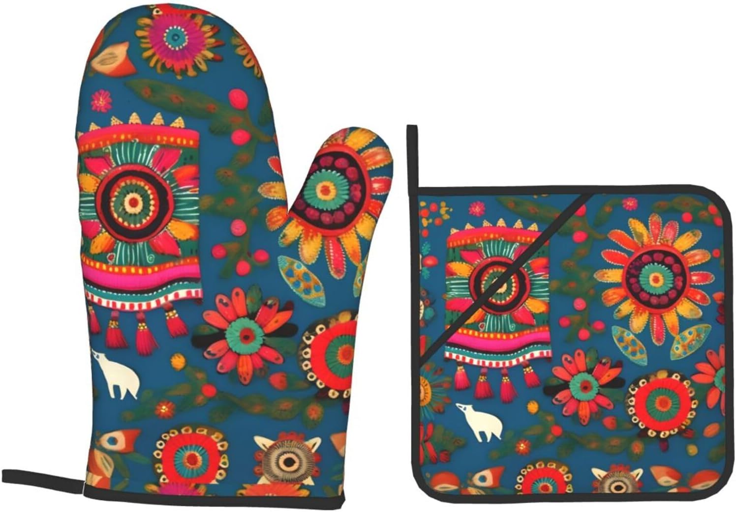 Discover the ultimate blend of functionality and style with our Mexican Folk Art Boho print heat-insulating gloves, crafted from premium polyester and heat-insulating fabric. These gloves are not just any ordinary pair; they are a must-have for your kitchen and outdoor grilling adventures. With a finely crafted design, they offer a thick, durability layer of protection against heat, making them your go-to for handling hot kitchen lids, microwave ovens, ovens, and more. The innovative side hanging rope design ensures easy hanging and storage, adding convenience to your daily routine. Whether you're a culinary enthusiast or a weekend grill master, these gloves are designed to meet your needs, offering a unisex appeal that suits everyone. Elevate your kitchen game with our heat-insulating gloves, where quality meets practicality. Fit for those who value both form and function in their kitchen essentials
