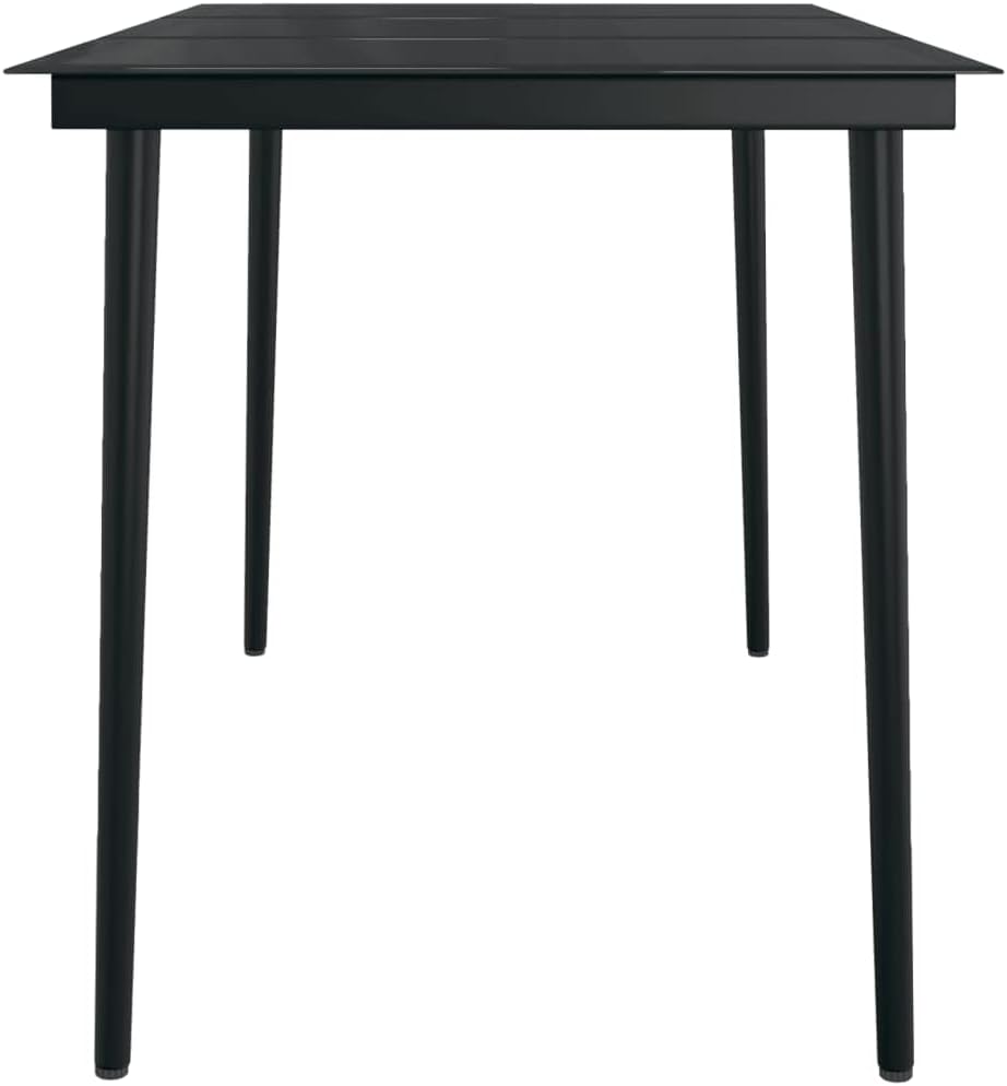 This minimalist steel and glass dining table will make a classic addition to your garden, balcony and patio.This dinner table is made up of a powder-coated steel frame, sturdy and stable for daily outdoor use. The smooth glass tabletop is easy to clean with a damp cloth and perfect for placing meals, drinks and other decorative items.Note: In order to extend the life of your outdoor furniture, we recommend you to clean it regularly and do not leave it outdoors without protection unnecessarily.Clean: Use a mild soap solution.Storing: If possible, store in a cool, dry place indoors. If the product is stored outdoors, protect it with a waterproof cover. Wipe and dry the excess water or snow from flat surfaces after a rain or snowfall. Allow sufficient air circulation to avoid moisture-related damage.Color: BlackMaterial: Powder-coated steel, glassDimensions: 31.5" x 31.5" x 29.1" (L x W x H)Assembly required: Yes