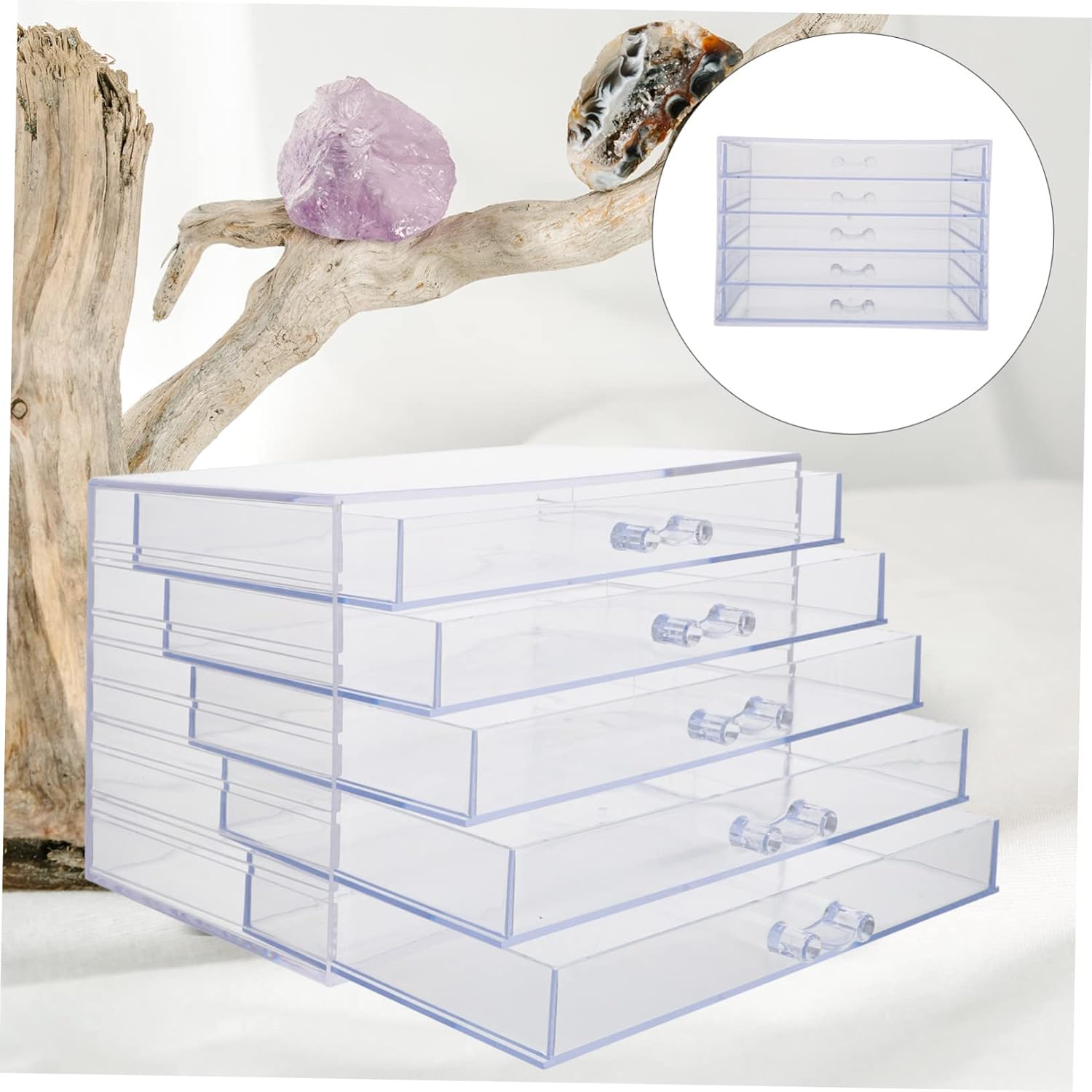 Package List 1 x nail tool storage box Characteristics - Size: 22.00X15.00X14.50cm/8.65X5.89X5 transparent nail products storage box. -Material: Acrylic nail accessories -Color: Transparent organizing drawers stackable - to store nail accessories like nail brush and clipper, etc. It is convenient to organize all your nail polishes drawers. -The organizer box helps to store your small and tiny things orderly and keep your desktop tidy acrylic jewelry. -Made from premium acrylic material for durable and long-lasting use manicure tools storage container. -It is portable to carry. You can easily take it wherever you go clear nail polish. -Multi-functional manicure tool storage box, simple and neat jewelry.Goods Informationnail art tools organizer to store nail accessories like nail brush and clipper, etc.acrylic 5 drawer organizer Also, for storage of beads, button, diamond, and other small items.drawer organizer for makeup This product is made of premium acrylic material, durable for long term use.tabletop accessories Transparent design, you can easily identify what kind of items in this box
