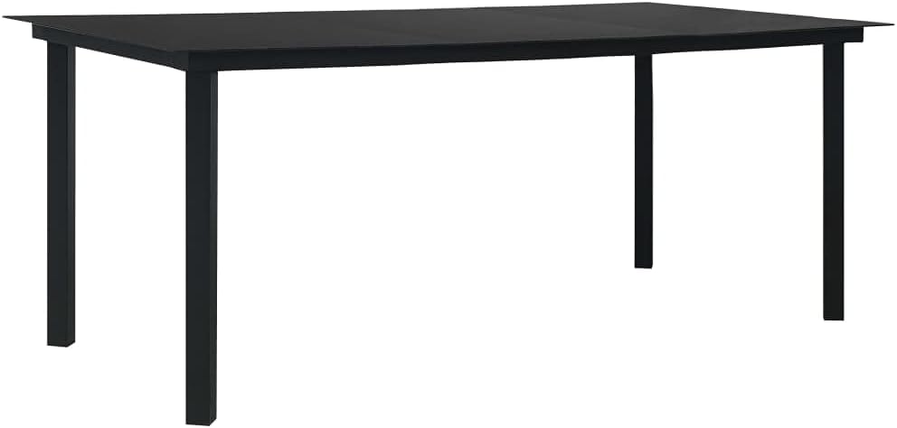 The dining table adds a modern look and is specially designed for your garden, patio, or dining room.The patio table features a strong construction of steel frame with powder-coated finish. The glass tabletop also makes it easy to clean and weather resistant. This patio table is extra stable, durable and rust resistant.Note: The tabletop consists of 3 connected parts.Color: BlackMaterial: Glass, powder-coated steelOverall dimensions: 59.1" x 31.5" x 29.1" (L x W x H)Assembly required: Yes