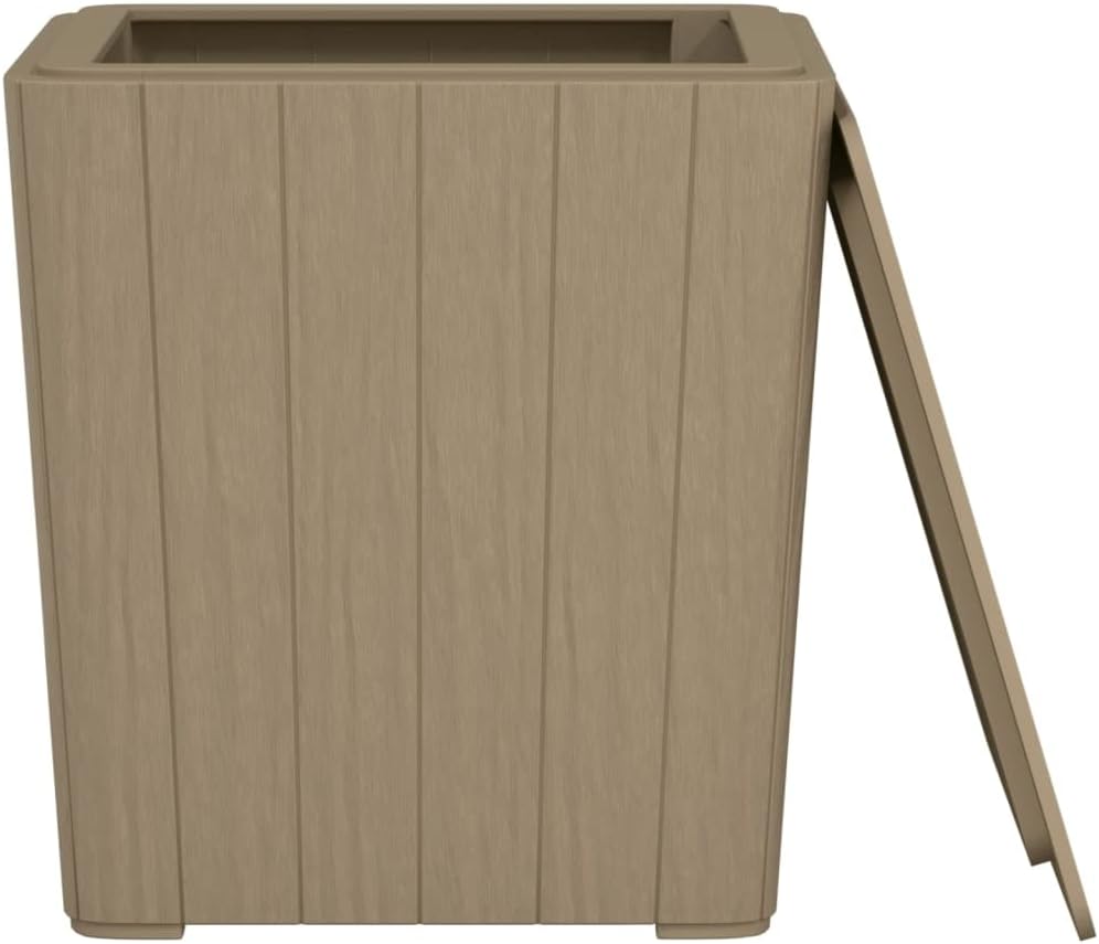 This stylish patio table with a convenient storage compartment and a removable lid is an ideal addition to your outdoor space.Durable material: Polypropylene (PP) is a popular plastic that is also one of the most used materials in outdoor furniture. It's lightweight, tough, and resistant to impact. Also, its resistance to UV rays and weathering makes it easy to clean and maintain.Imitation wood texture design: The outdoor table features an imitation wood texture design that adds a touch of natural charm to your outdoor living space.Extra storage area: The garden side table has a storage area under the removable lid, which is perfect for keeping your essentials within reach and well organized.Practical lid: With the lid closed as a tabletop, the sturdy balcony table is perfect for keeping your phone, book, snack, or drink within reach.Note:To make sure your outdoor furniture stays beautiful, we recommend protecting it with a waterproof cover.Color: BlackMaterial: Polypropylene (PP) with a wood lookDimensions: 15.2" x 15.2" x 16.5" (W x D x H)Storage capacity: 11.4 galAssembly required: Yes