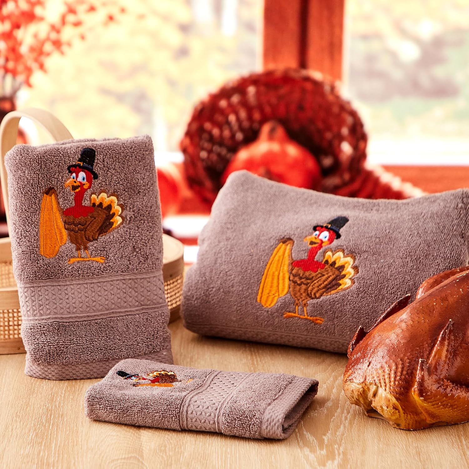 Features: Enhanced absorbency and durability: Experience the benefit of excellent water absorption with our thick towel set. Designed to draw moisture away quickly, these towels dry you off in no time. Their durable construction and strong water retention ensure they remain reliable and robust through countless washes. Safe and chemical free: Our thanksgiving towels are free from harmful chemicals and materials, making them safe for your entire family. With no dyeing or fading, you can trust that what touches your skin is gentle and pure cotton, rightly upholding hygiene and comfort. Specifications: Material: 100% cotton Color: orange Size: Bath towel: about 28 x 55 inches/ 70 x 140 cm Hand towel: about 14 x 29 inches/ 35 x 75 cm Wash coths: about 14 x 14 inches/ 35 x 35 cm Package includes: 2 x Bath towel 2 x Hand towel 2 x Wash coths Notes: Manual measurement, please allow slight errors on size. The color may exist a slight difference due to different screen displays.