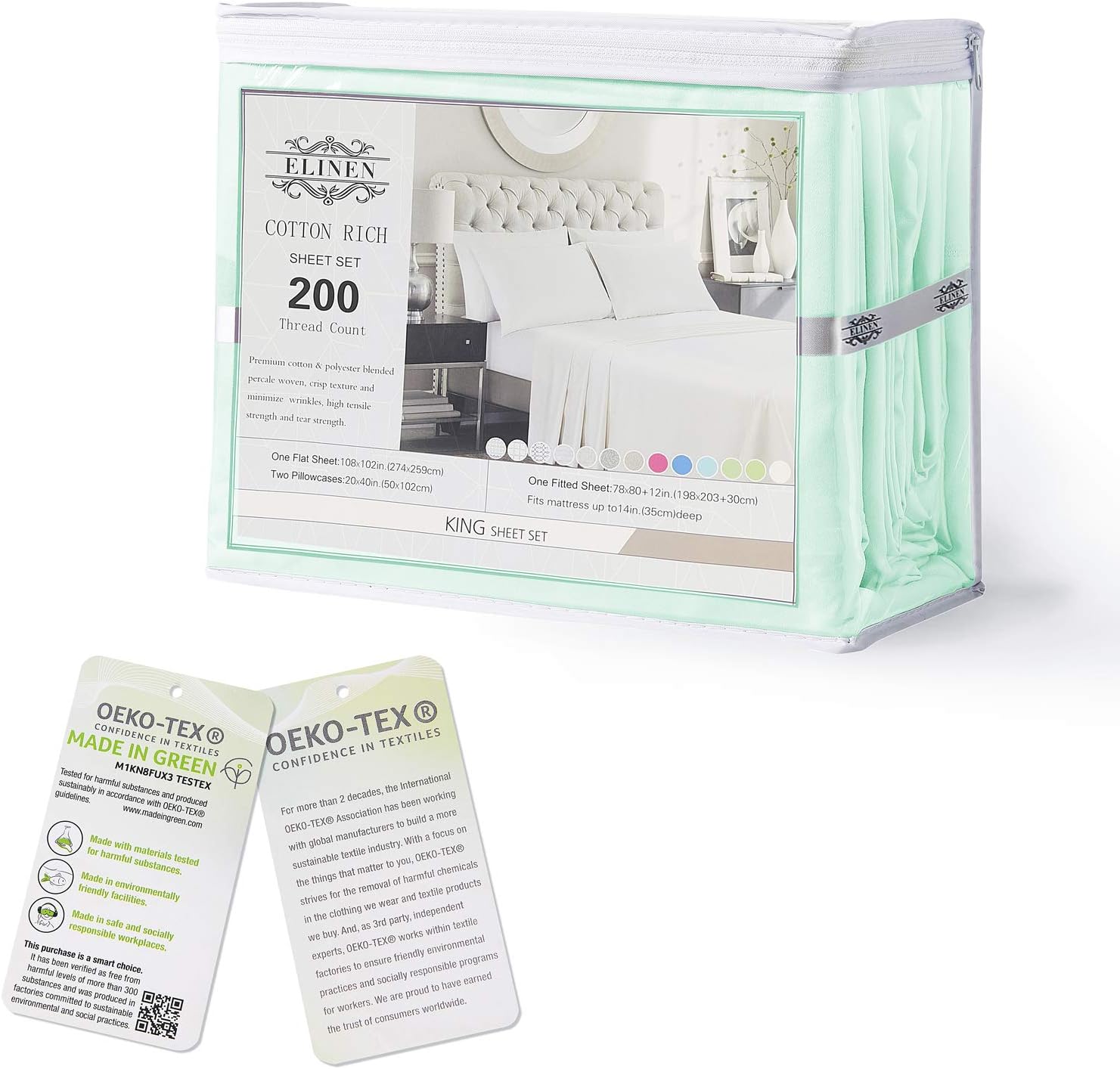 • ✿Excellent Quality -- All the Products follow ISO STANDARDS and have MADE IN GREEN label, MADE IN GREEN by OEKO-TEX is a traceable consumer label for products made with materials tested for harmful substances, made in environmentally friendly facilities and made in safe and socially responsible workplaces. Following the best processes and International Quality Standards, these beautiful sheets are SKIN FRIENDLY, hypoallergenic and made to last long.