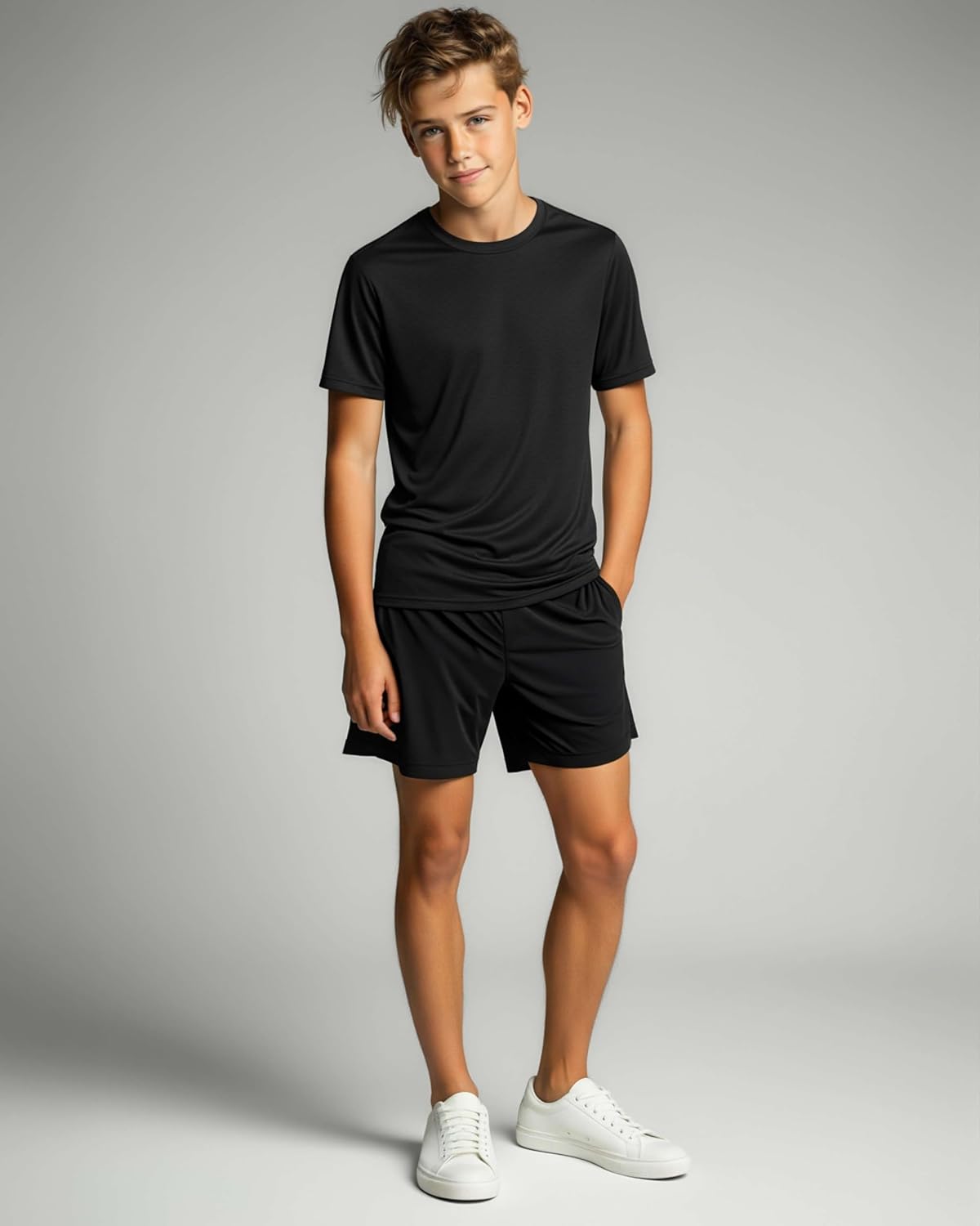 Keep your kids comfortable and active all day with the Real Essentials 5 Pack Boys Breeze Tech Athletic T Shirts. Made with lightweight quick dry fabric, these boys shirts are designed to handle school, gym, and every workout or sports activity in between. Each tee offers breathable comfort and moisture-wicking performance, making them perfect for running, playing, or just everyday wear. This multipack of boys tshirts gives parents unbeatable value with plain short sleeve tees that work as undershirts, activewear, or casual tops. Designed for kids youth and teens, each shirt delivers a true-to-size fit that moves with them through every activity. Whether they’re heading to gym class, team practice, or simply lounging at home, these boys’ athletic tees are the everyday essential. With Real Essentials, you get more than just a pack of shirts—you get quality, comfort, and performance in one multipack. Stock up on these must-have boys tshirts and keep your child ready for every adventure.