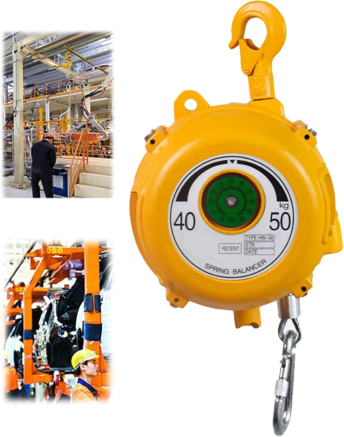 ** Spring Balancer - **Shell Material:** Aluminum - **Load-Bearing Range:** - 1.9m - 1-3kg - 1.9m - 3-5kg - 1.9m - 5-7kg - 1.9m - 5-9kg - 1.9m - 9-15kg - 1.6m - 15-22kg - 1.6m - 22-30kg - 1.6m - 30-40kg - 1.6m - 40-50kg - 1.6m - 50-60kg - 1.6m - 60-70kg - 1.6m - 70-80kg *Note: The weight of the tool must not be less than the minimum load rating and must not exceed the maximum load capacity.***After-Sales Service** As a customer-focused company, we are committed to addressing any questions or concerns you may have regarding this product. Please reach out to us at any time, and we will provide a satisfactory response within 24 hours. Our team will do its utmost to resolve any issues.**Safety Notes** 1. Check for loose fasteners. 2. Inspect the upper and lower hooks for bruises, cracks, or other defects. 3. Ensure the safety rope is reliable. 4. Look for cracks or significant wear on the shell and cone wheel. 5. Verify that the shell device operates normally. 6. If not in use for an extended period, it is advisable to unload and store the balancer, ensuring it is kept moisture-proof to prevent rust on the coil spring. This optimized description maintains the original content while improving clarity and structure.