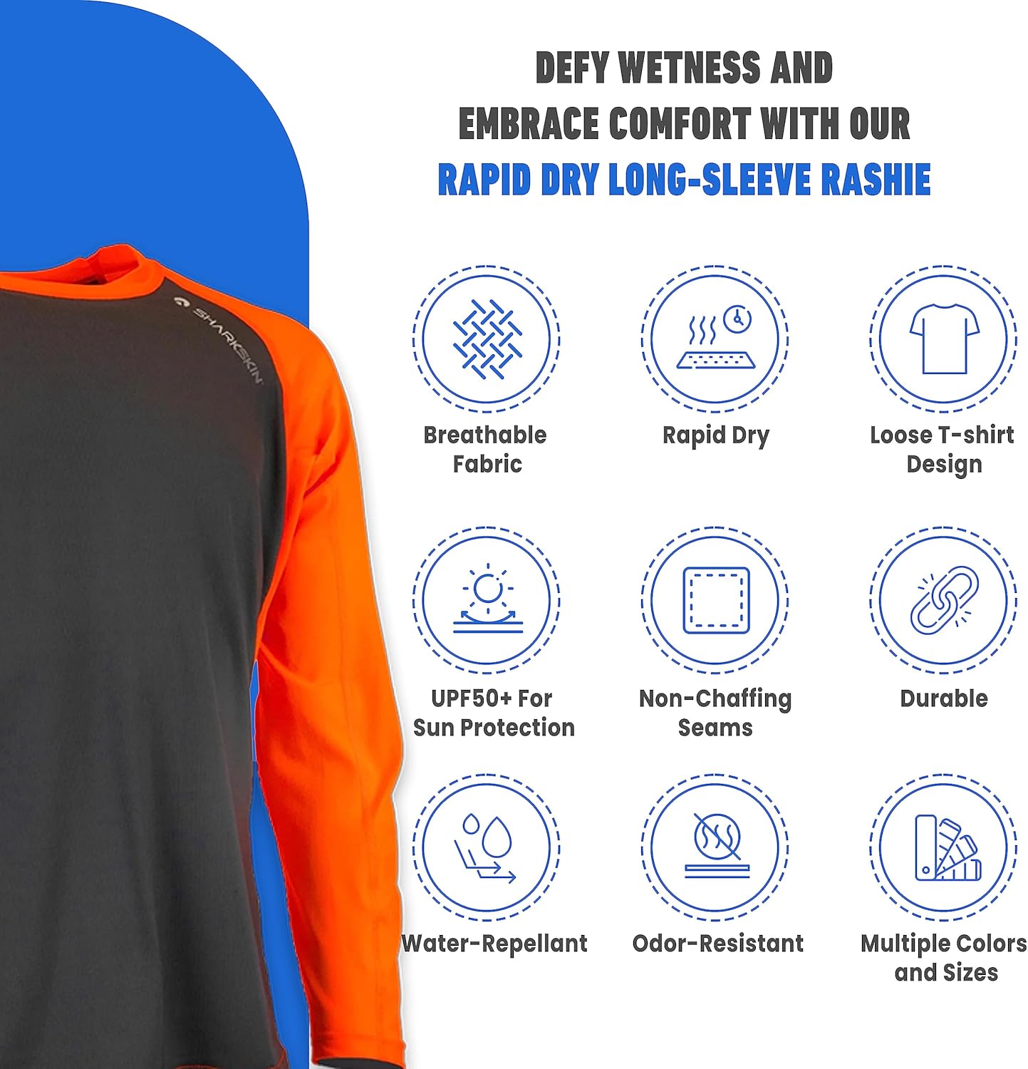 The long sleeve rapid dry top is great-in-summer or when conditions dictate. The Sharkskin rapid dry stylish loose-fit for casual-wear by itself or layered-over a sleeveless-vest to make a chill-proof long sleeve fashion statement. It is also comfortable-for-everyday-use as well as on-the-water. Unlike traditional surface garments, Sharkskin rapid dry uses an advanced Australian-made water repelling and rapid drying material. Sharkskin understands that water sports enthusiasts demand the same level of technical Exposure protection for surface activities as they do for in-water applications. Providing ultimate protection from the sun and drying in literally-minutes, the loose-stylish cut means your rapid dry garment is the perfect-choice both on-and-off the water. Rapid dry is a lightweight, fast drying fabric in which the unwoven yarn is infused with a water repellent treatment (wrt). this method achieves a finish that is vastly more effective at shedding water and lasts much longer than traditional fabric treatments. The rapid dry fabric is warmer than cotton and nylon/lycra synthetic fabrics when wet. It has an SPF50+ rating for full sun protection, is lightweight and breathable and is Chlorine resistant. The Sharkskin rapid dry is available in multiple sizes and colors and is covered by a 12 month limited.