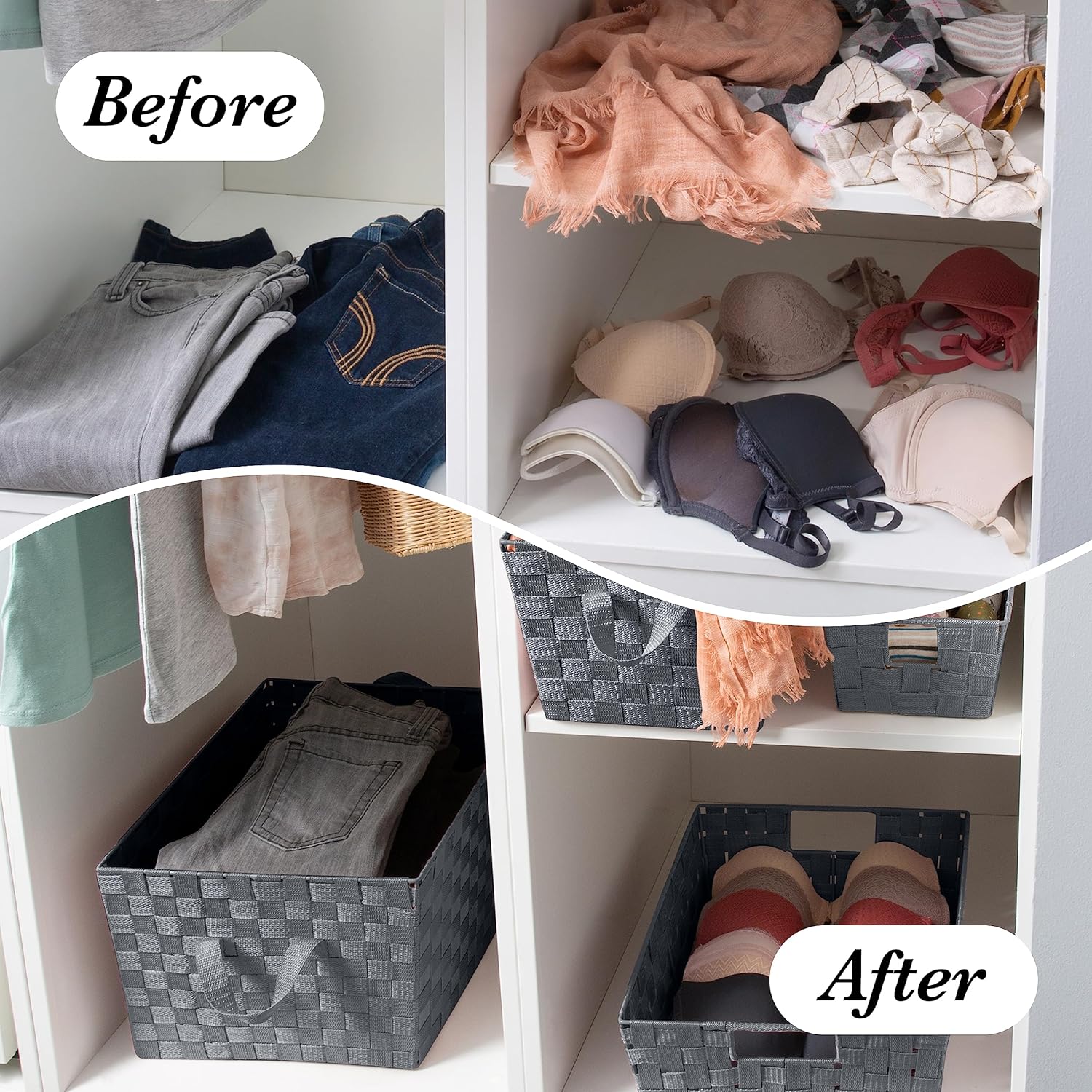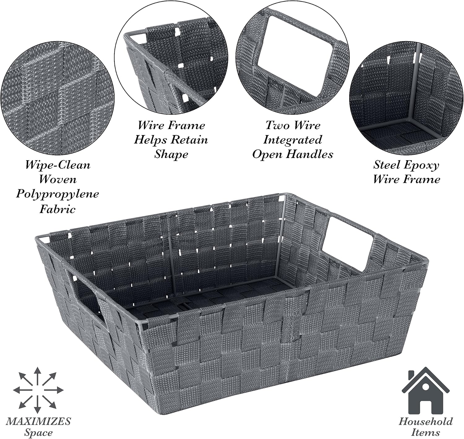 Organize your entire home with these decorative Simplify woven baskets. Comes in many colors and styles to fit your storage needs for every room in the house. Decorative design to add to your décor. Small baskets for the little items and large baskets for your blankets, magazines and more! A basket for every storage need!