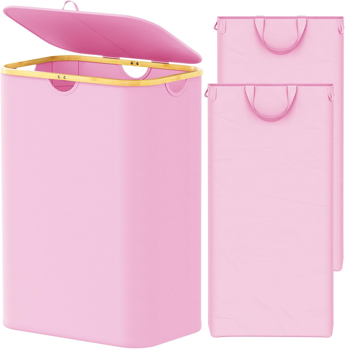 Large Capacity yet Space-Saving: Measures 19-1/2” x 14-1/4” x 29”, 34-gallon (160L) capacity and 2 section. Tall basket hold tons of clothing while taking up little floor space. Bamboo matching cloth design is a perfect addon to your bedroom, laundry room, bathroom, college dorm, or kid room's decor.