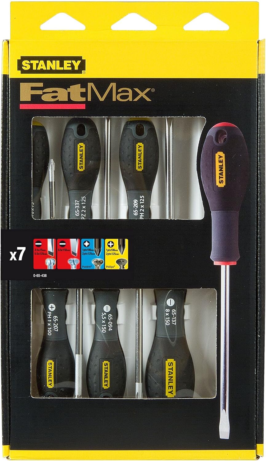 Stanley 065438 Fatmax Screw Driver Set includes Parallel/ Flared/ Phillips/ Pozi Drives (7 Pieces)