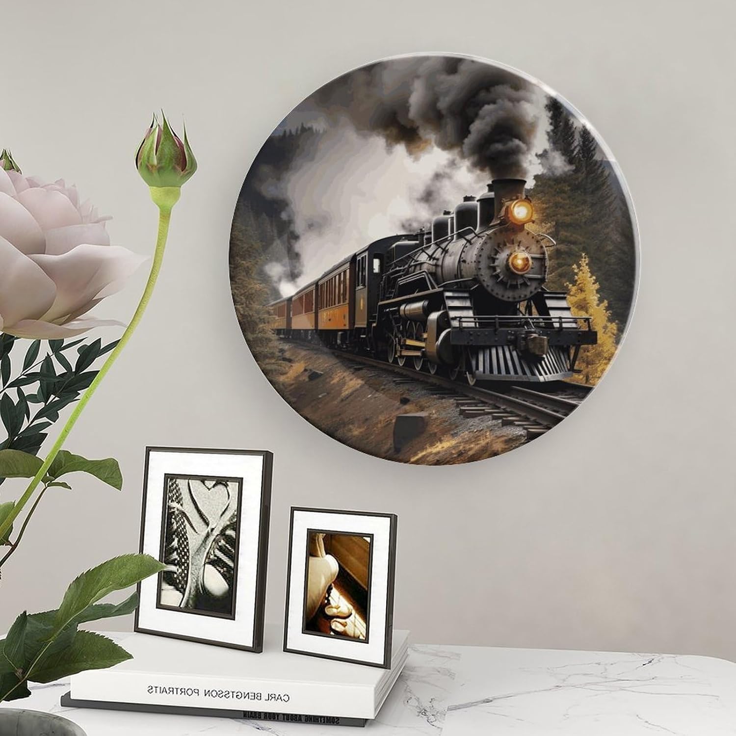 Decorative Plate for Display, Bone China Decorative Plate, Ceramic Dinner Plate with Stand, Vertical Ceramic Plate for Home Office Kitchen Table/Wall Hanging Decor