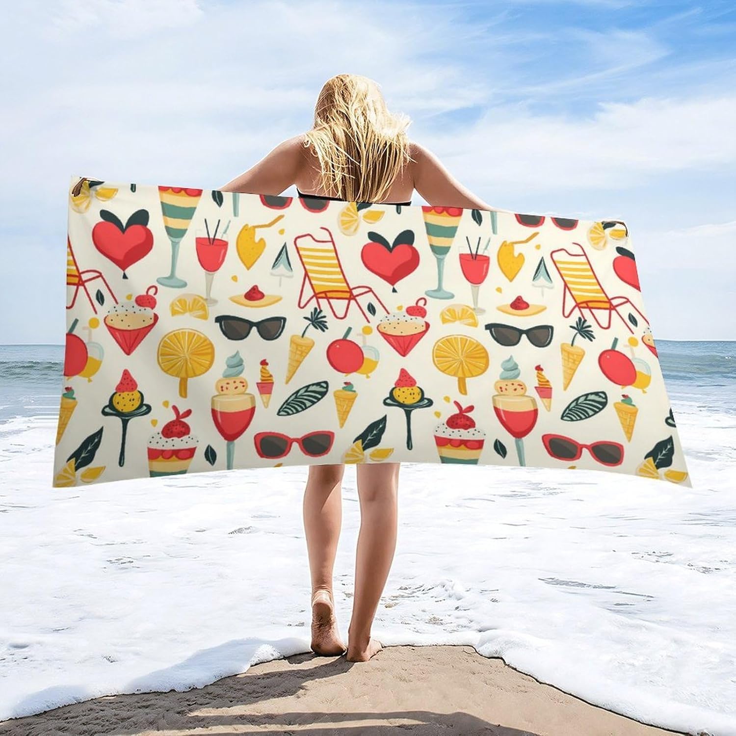 Beach Towel for Women Men Lightweight Beach Absorbent Towel Quick Dry Towel for Swimmers Sand Proof Beach Towels,the beach towel can quickly absorb excess body water, so you won't feel cold after bathing, swimming in the pool, or swimming at the beach