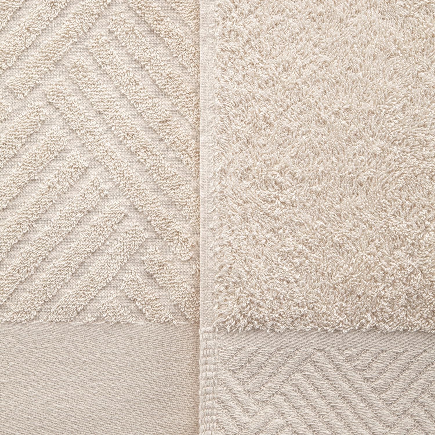 Elevate the beauty of your bathroom with this Jacquard 12-Piece Face Towel/ Washcloth Towel Set. Expertly crafted from Turkish Cotton fibers with a single-ply terry loop construction, these charming towels are ultra-plush, absorbent, and wick moisture off the skin to get you warm and dry quickly. This towel set comes in two unique patterns you can mix and match, including a solid design with a raised border and a sculpted herringbone design with a solid border to bring rich texture to any master bath, powder room, or guest bath. Each bundle includes 12 face towels/ washcloths with a built-in loop to hang your towel easily for fast-drying. Bring the luxury of the spa to your own home with these charming and comfortable towels.