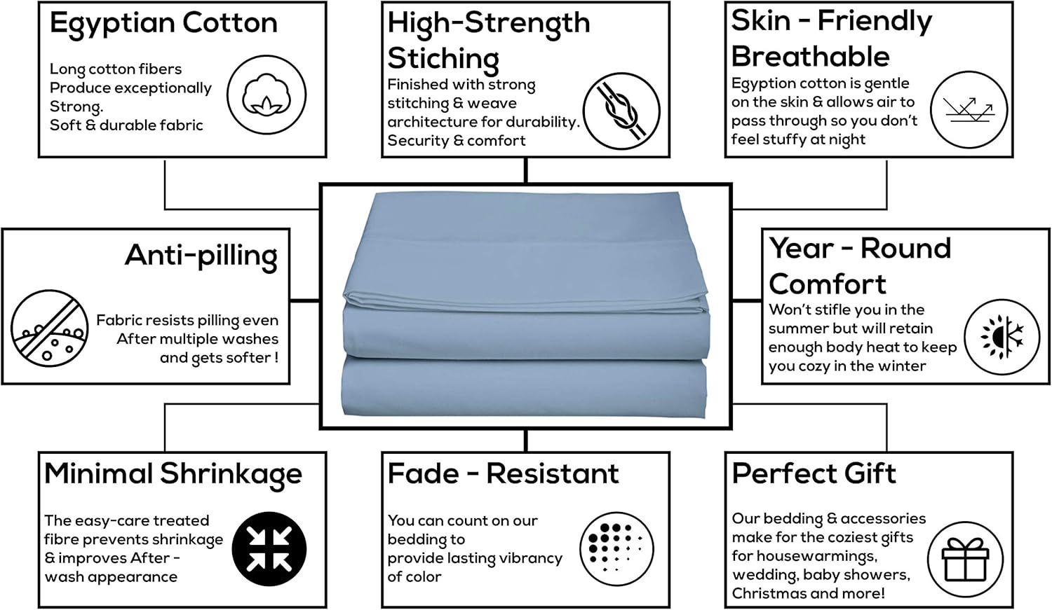 LUXURY AND COMFORT: Experience the grandeur of 5 Star indulgence when you sleep in these super soft Egyptian Cotton Flat Sheets. This exquisite Oversize Flat Sheet has been painstakingly crafted from the finest 100% Long Staple Cotton yarns keeping your comfort in mind.FABRIC FEATURES: Try These excellent quality 100% Egyptian cotton Flat Sheets designed to give a world class sleeping experience yet affordable. We research and create bedding that enables you to have the most comfortable sleeping experience. It is very difficult to find high quality, luxury Egyptian cotton Sheets without paying a fortune. Textile experts: the construction is 150x110 50x50 yarns, Double pick construction - it doesn't get any better. Higher thread count does not mean higher quality. it just means more yarns are twisted together and the fabric is heavier.AFFORDABLE LUXURY: Create a welcoming environment and a restful feeling in the bedroom with this TOP QUALITY and AFFORDABLE Bedding Collection.HOME WASHABLE: Wash them on the Normal cycle and remove sheets from the dryer quickly to keep them wrinkle-free. Iron your Flat Sheet for that brand-new feel. Wash linens separately from items with zippers to keep them from pilling. Add detergent to the water instead of pouring it right onto your sheets