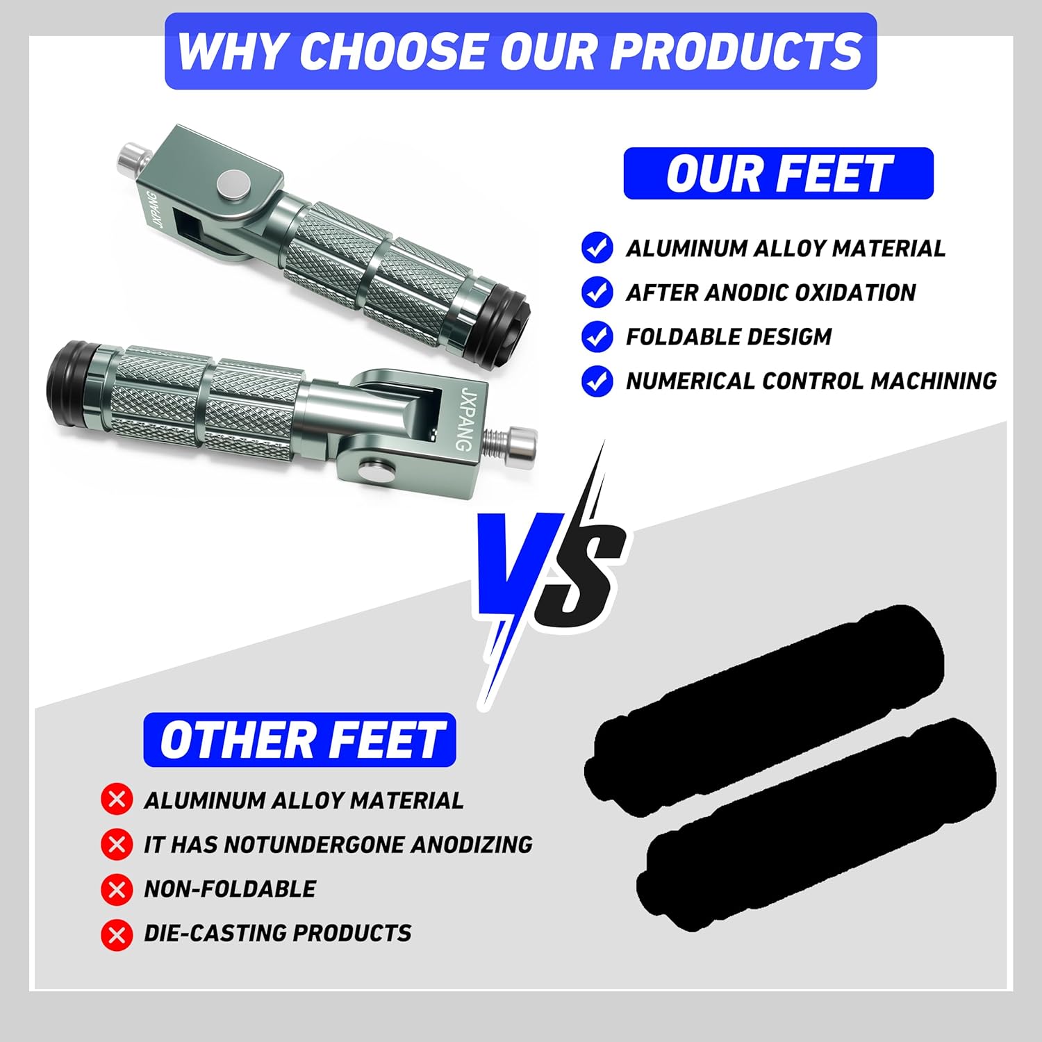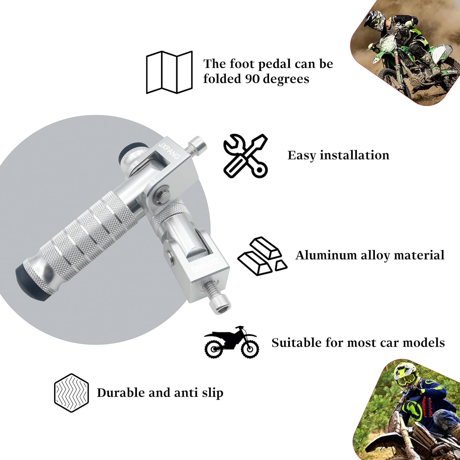 【Package】2 Foldable Foot Rest Pedal. Easy install,installation Instructions is not Included, directly replace original foot pegs