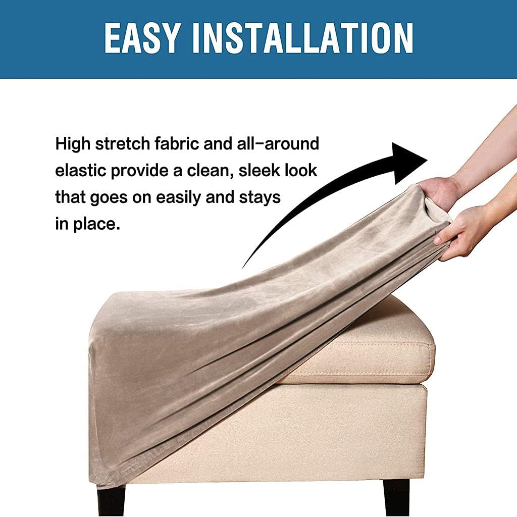 This cozy and soft plush velvet ottoman cover gives your living room a fresh look while protecting your furniture from pet hair, spills, and more. Our covers are Designed and ready-made to fit a variety of furniture. Made of soft velvet plush Fabric, each soft and bouncy ottoman cover is elasticated for a Perfect Fit.Specification:Product name: Pouf CoverMaterial: Soft velvetSize:Large:L-68-106cm(27-42in),W-50-76cm(20-30in),H-33-50cm(13-20in)X-Large:L-83-116cm(33-46in),W-63-81cm(25-32in),H-33-58cm(12-23in)Include:1 seat Ottoman Covers(Note: We only sell Footstool Covers, not including footstools!!!)Characteristic:Made of durable original velvet Fabric, soft, smooth and comfortable.Highly elastic and handcrafted make this sofa cover perfect for most sizes and styles, practical and aesthetic for your room decor.Note:Wrinkle-free for easy maintenance. Machine wash cold, Do not bleach, tumble dry low and do not ironDue to different monitors or screens, the colors may be slightly different as you see, but never change itself sights.