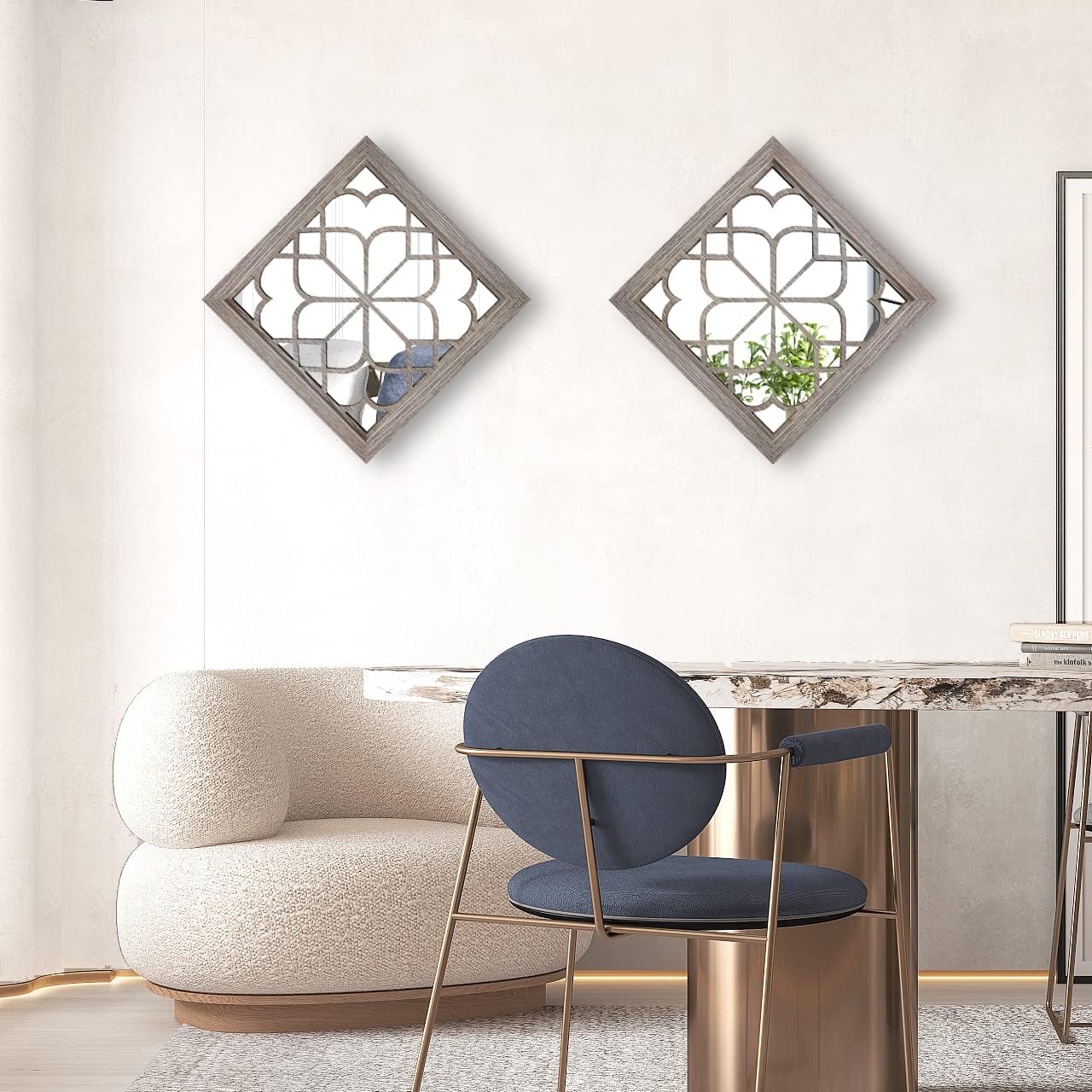 • DECORATIVE ACCENT :This chic mirror is handmade and is combined with the beautiful fine carved shape in the middle to make a perfect decorative mirror.It consists of MDF wood frame, 3mm mirror, exquisite carvings, and a back panel.It is stylish and very attractive and can fit in traditional or modern decor.